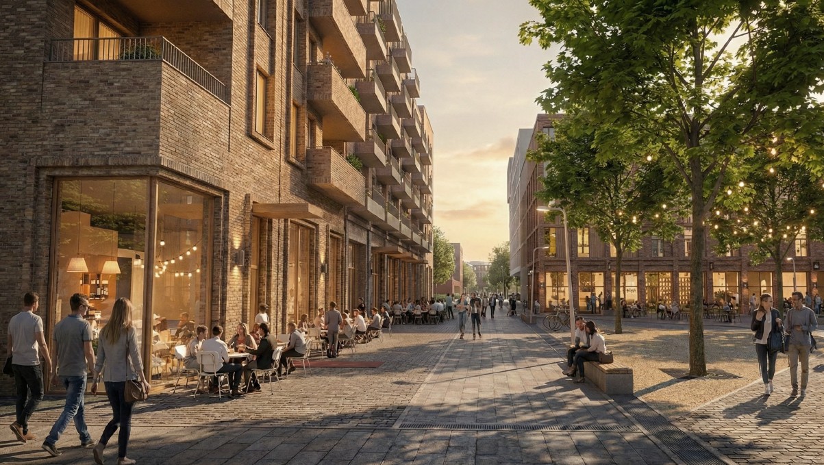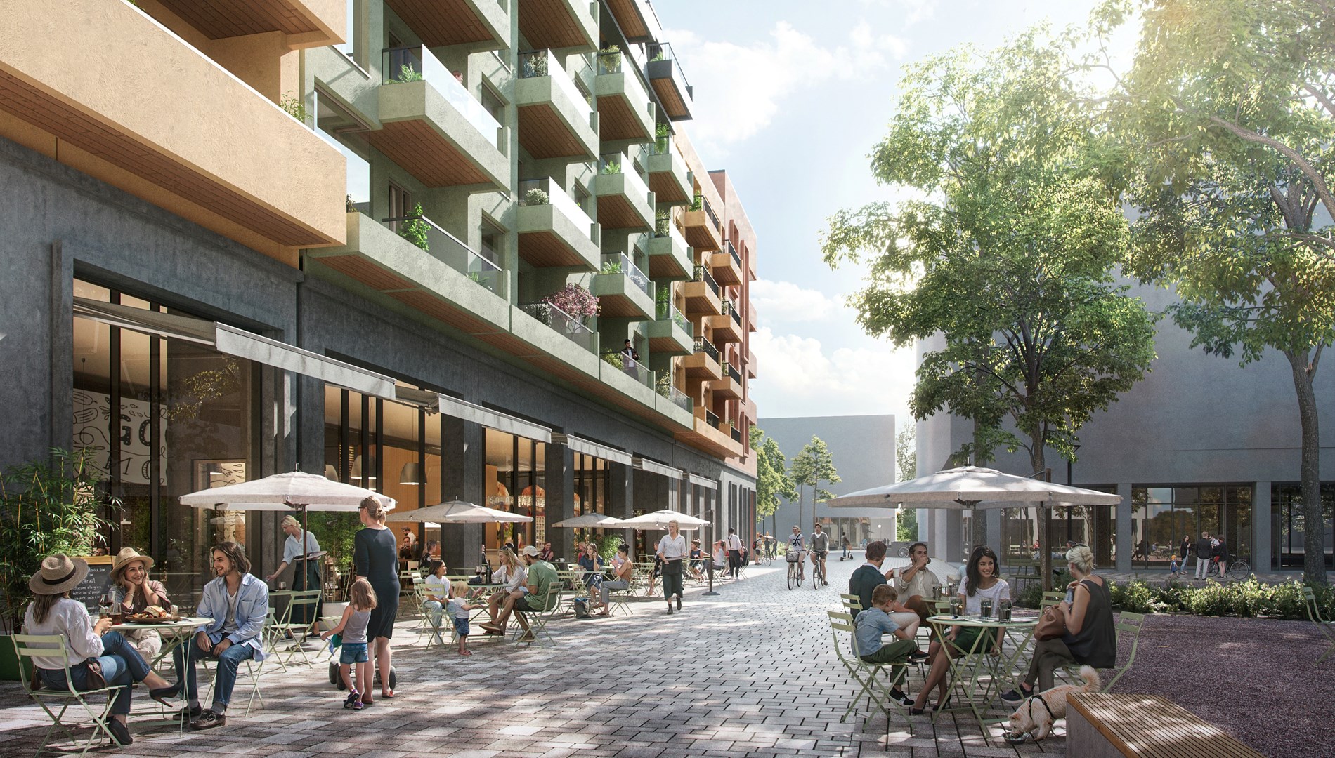 I hjertet av området kommer T-banens endestopp, omkranset av et levende sentrum med gågater, torg, sitteplasser og gårdsrom. Her møter byliv og natur hverandre i en harmonisk balanse som inviterer til bevegelse, samvær og overskudd. Vi kaller det fremtidens levende bymiljø.
