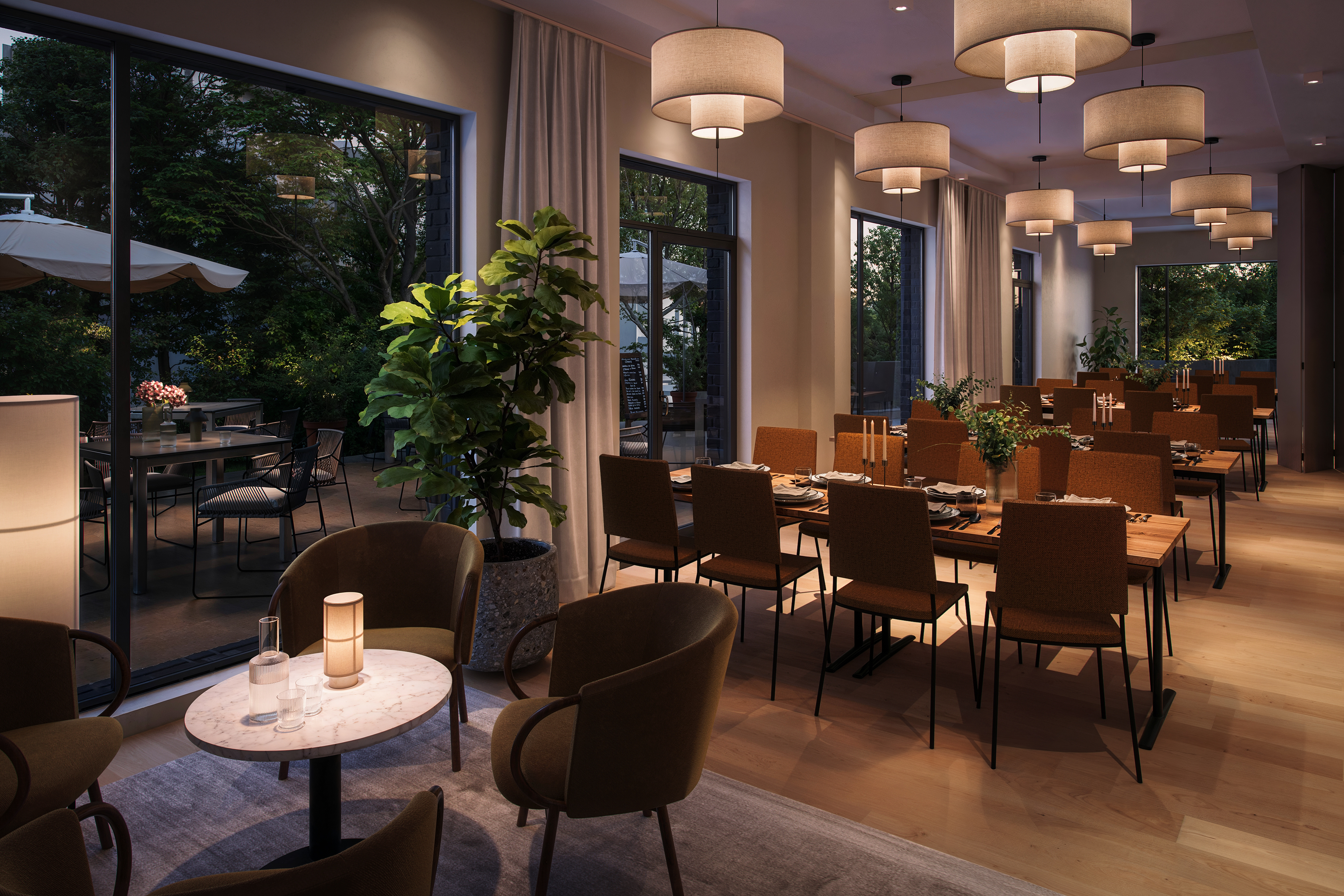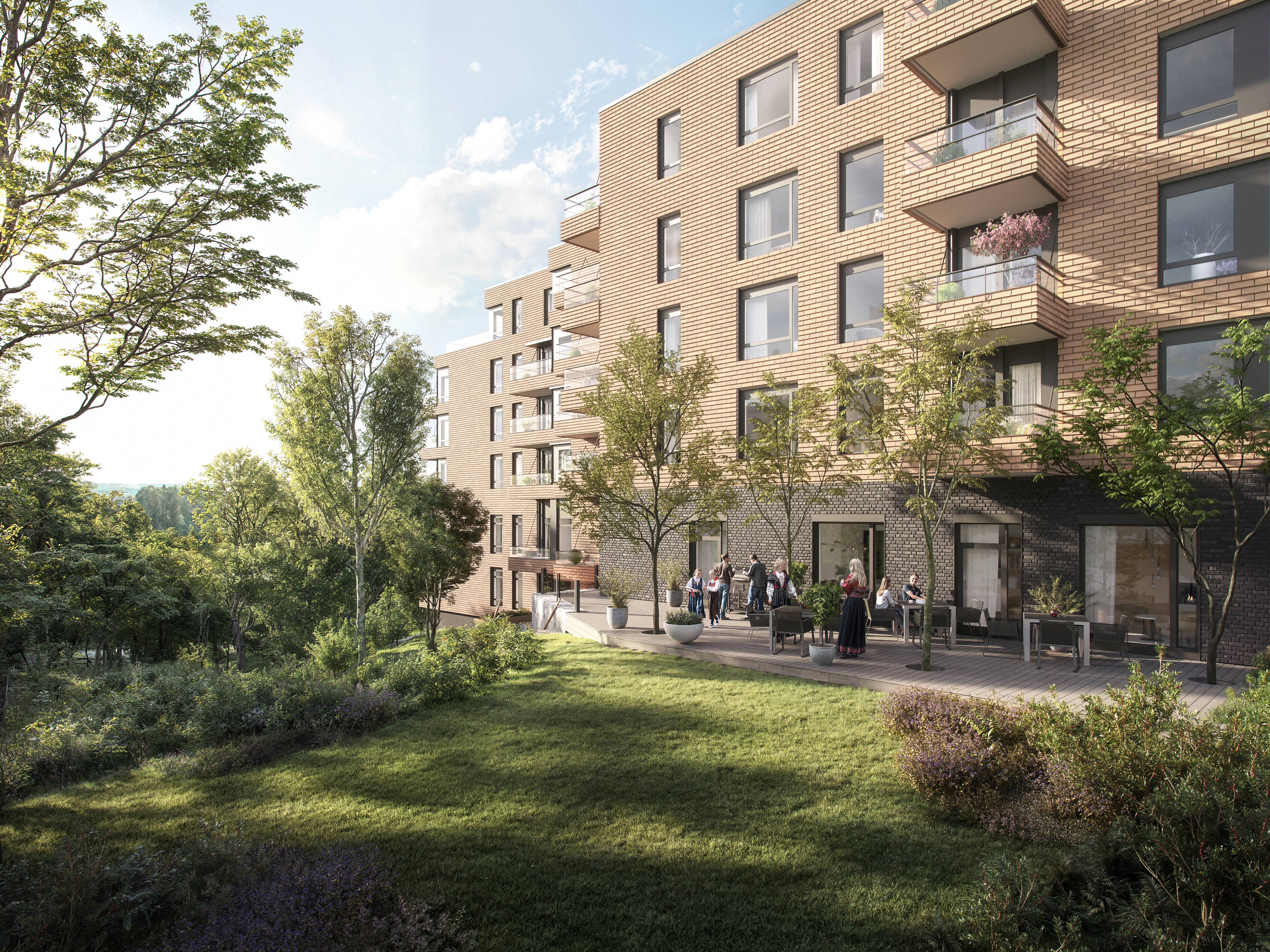 Området byr på et aktivt friluftsliv med turområder, skogsområder og grønne lunger rett utenfor døren. Den reetablerte skogen øst for prosjektet skaper en naturlig overgang mellom boligene og naturområdene, mens bekkedrag og grønne akser gir området et frodig og levende preg. Her kan du nyte det beste fra to verdener – urbant byliv og landlig ro – alt på samme sted.