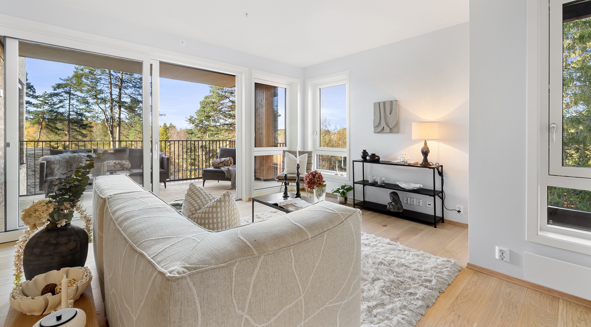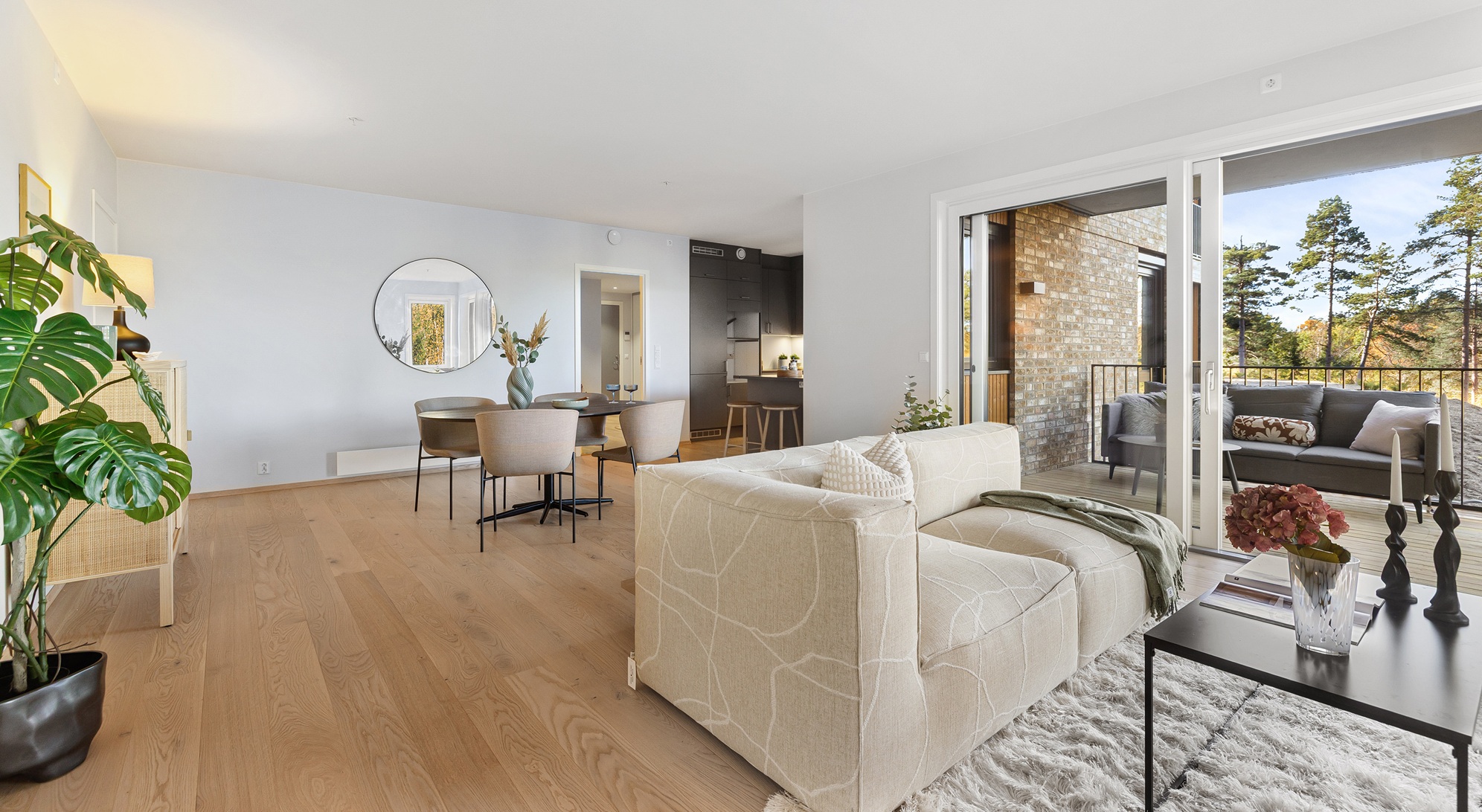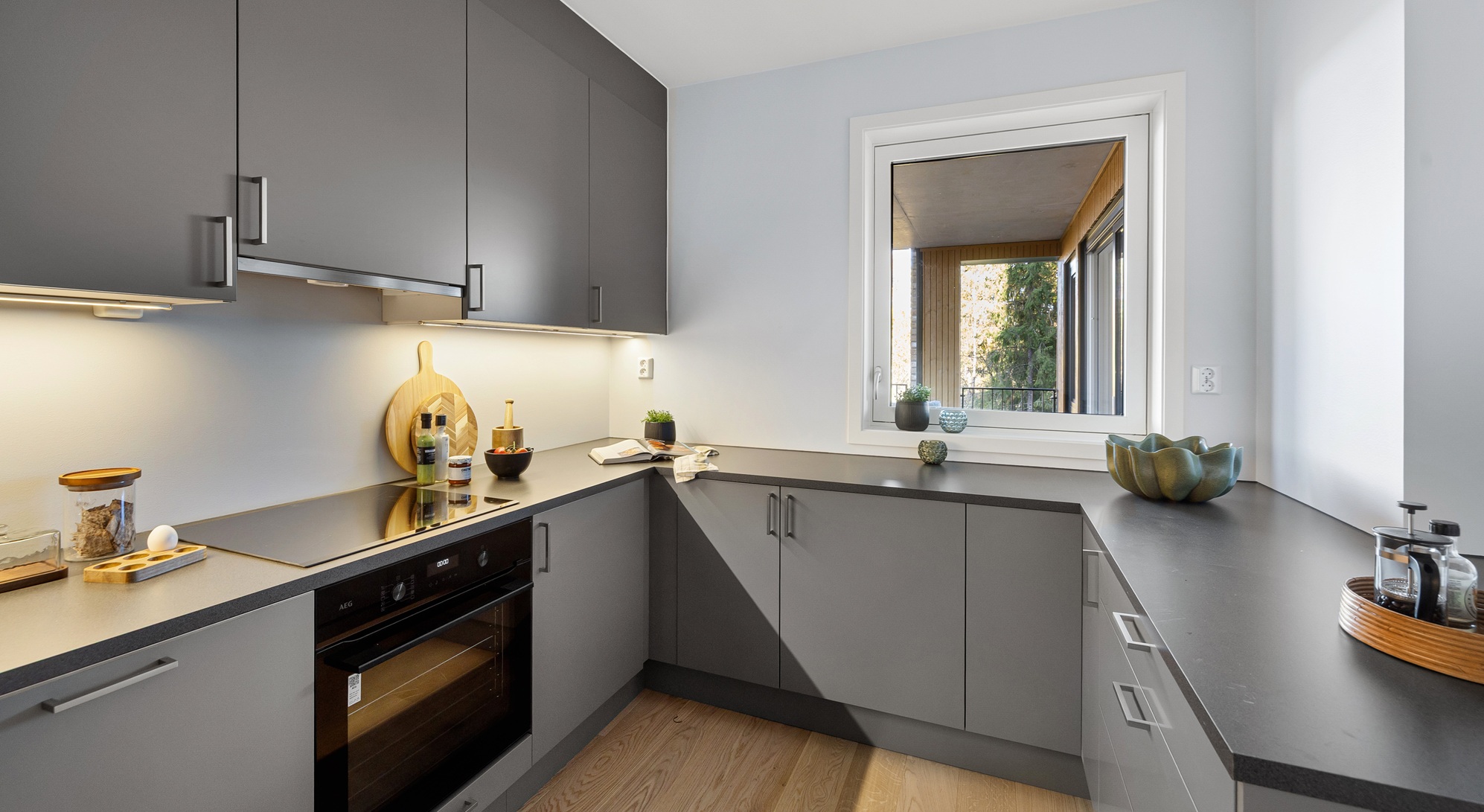 De første beboerne flyttet inn i 2021, og nå er de to siste husene, hus G og H, også innflyttingsklare. Det er kun én ledig leilighet igjen i hus H. Ta gjerne kontakt for å avtale privat visning, så du får se hvor fint det har blitt!
