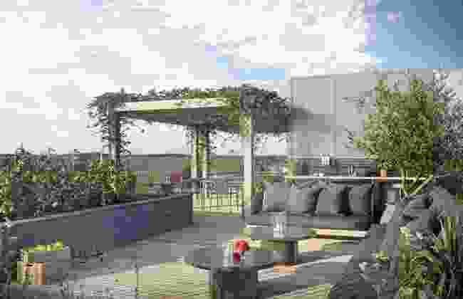 Gårdsrommet ligger vestvendt til og vil bade i sol på varme sommerdager. Takene får hyggelige fellesområder med supre muligheter for å dyrke både grønnsaker og gode relasjoner.