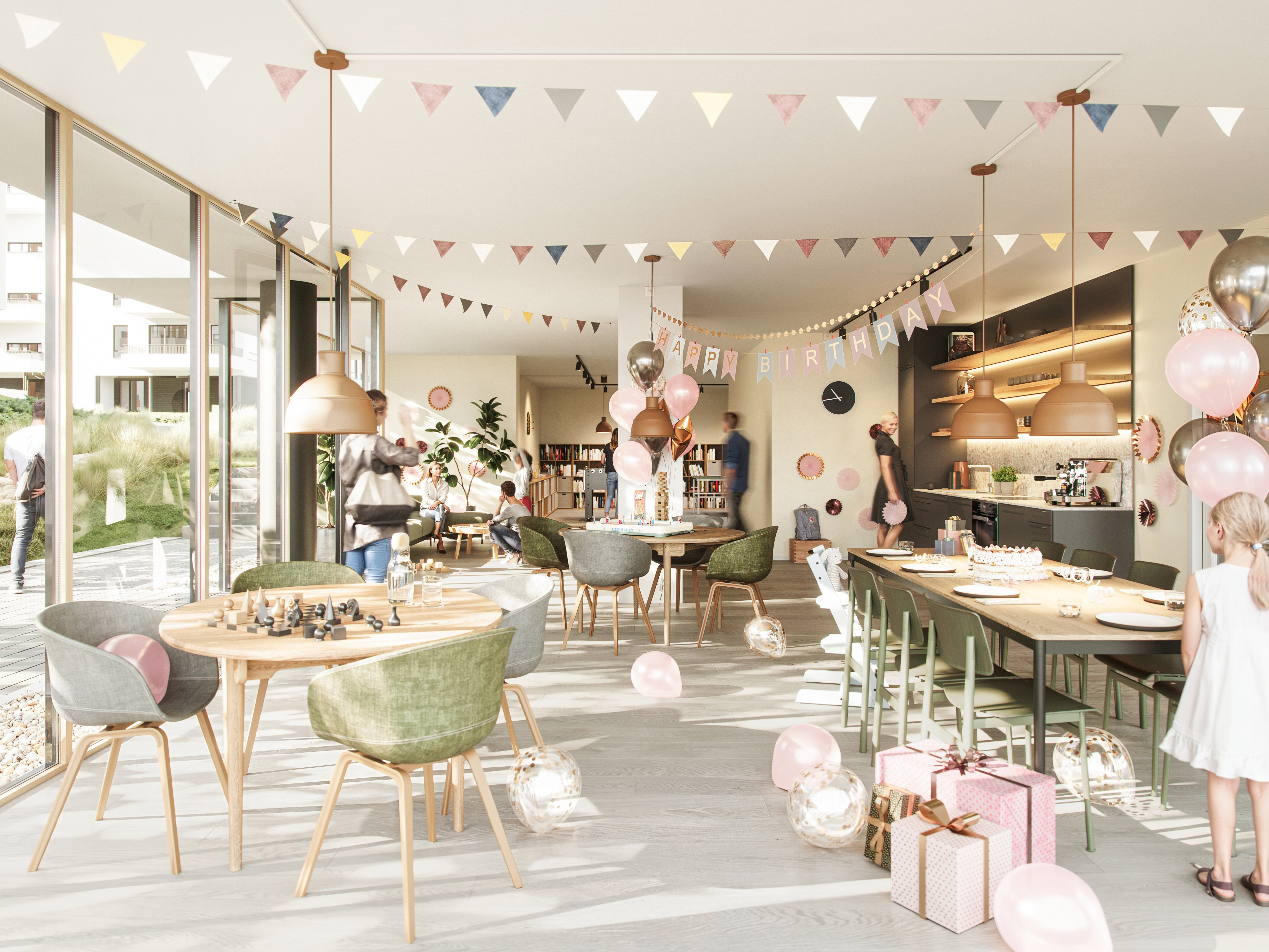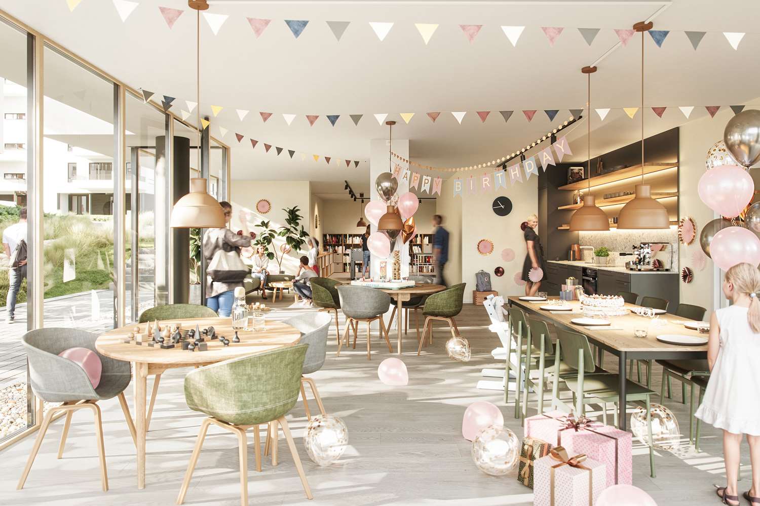 De nye fellesarealene som bygges sammen som del av Mathildetunet vil inkludere møterom og selskapsrom, arbeidssted for hjemmekontor eller hjemmelekser, og sosiale soner for små og store treff.