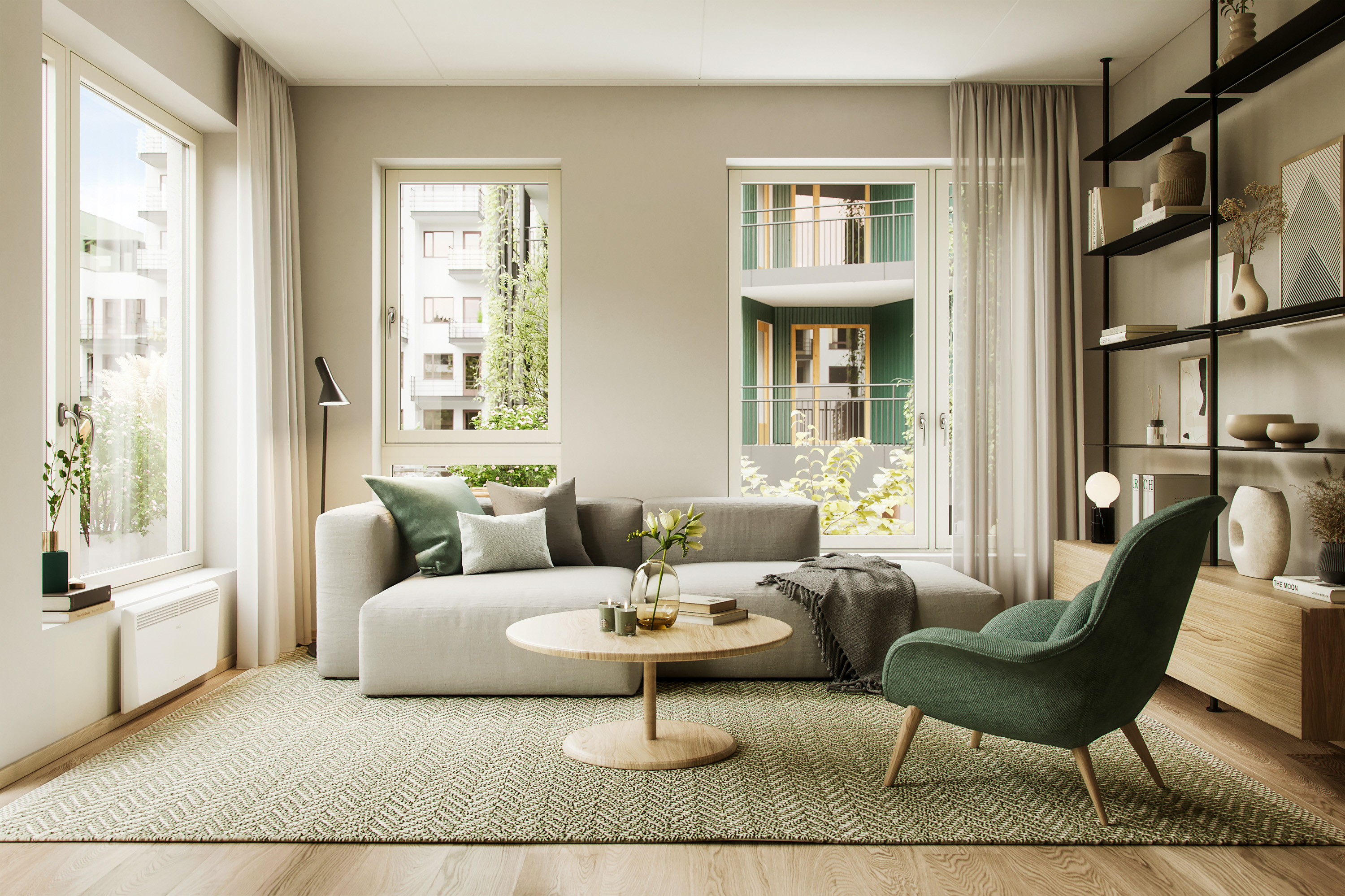 Leilighetene bygges etter siste tekniske standard som gir et godt inneklima og lave energikostnader. Leilighetene får store vindusflater og generøs takhøyde. Ved kjøp innen tilvalgsfristen kan man kostnadsfritt velge mellom tre interiørkonsepter, inkludert kjøkken og bad.