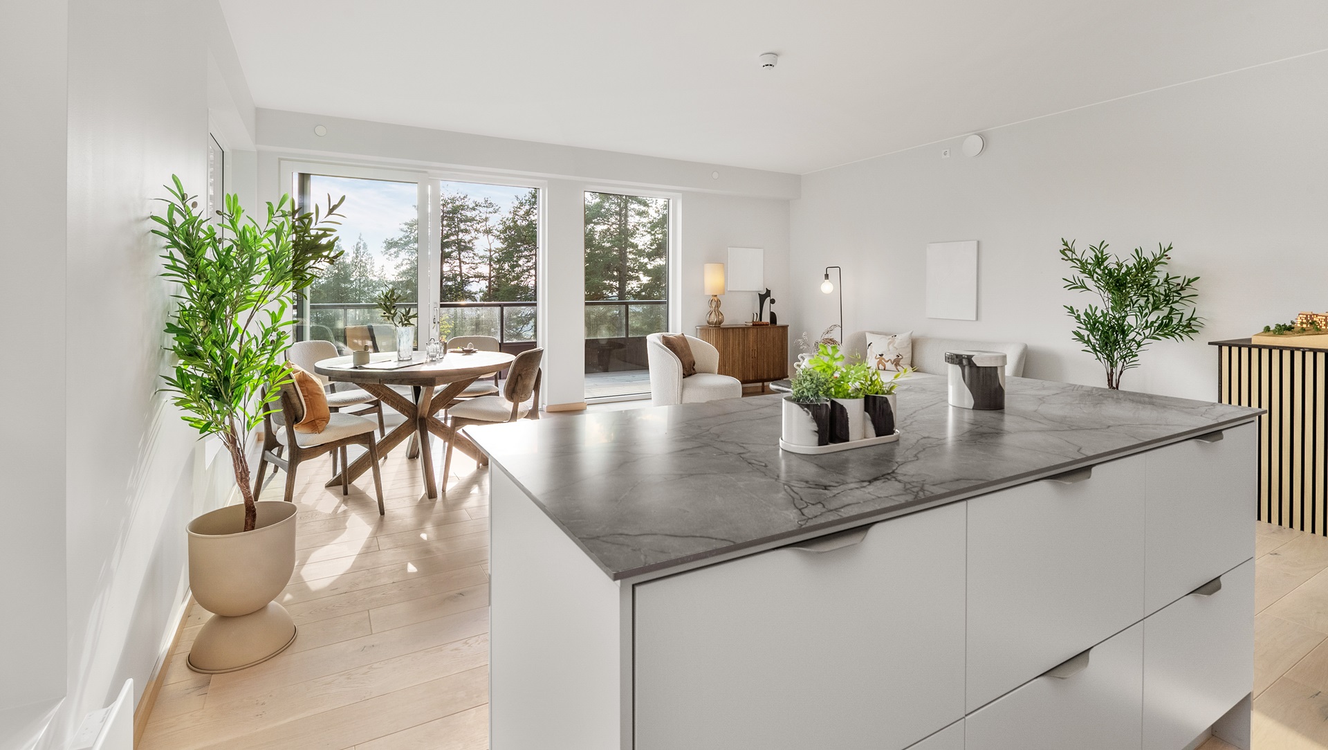 – Leilighetene er tilrettelagt så du skal kunne se gjennom og ut av leiligheten så mange steder som mulig. Vi har dermed gjenskapt litt av den følelsen du får når du klatrer opp på en liten knaus i skogen og kan skue ut over landskapet. Arkitekt Simon Krohn-Hansen