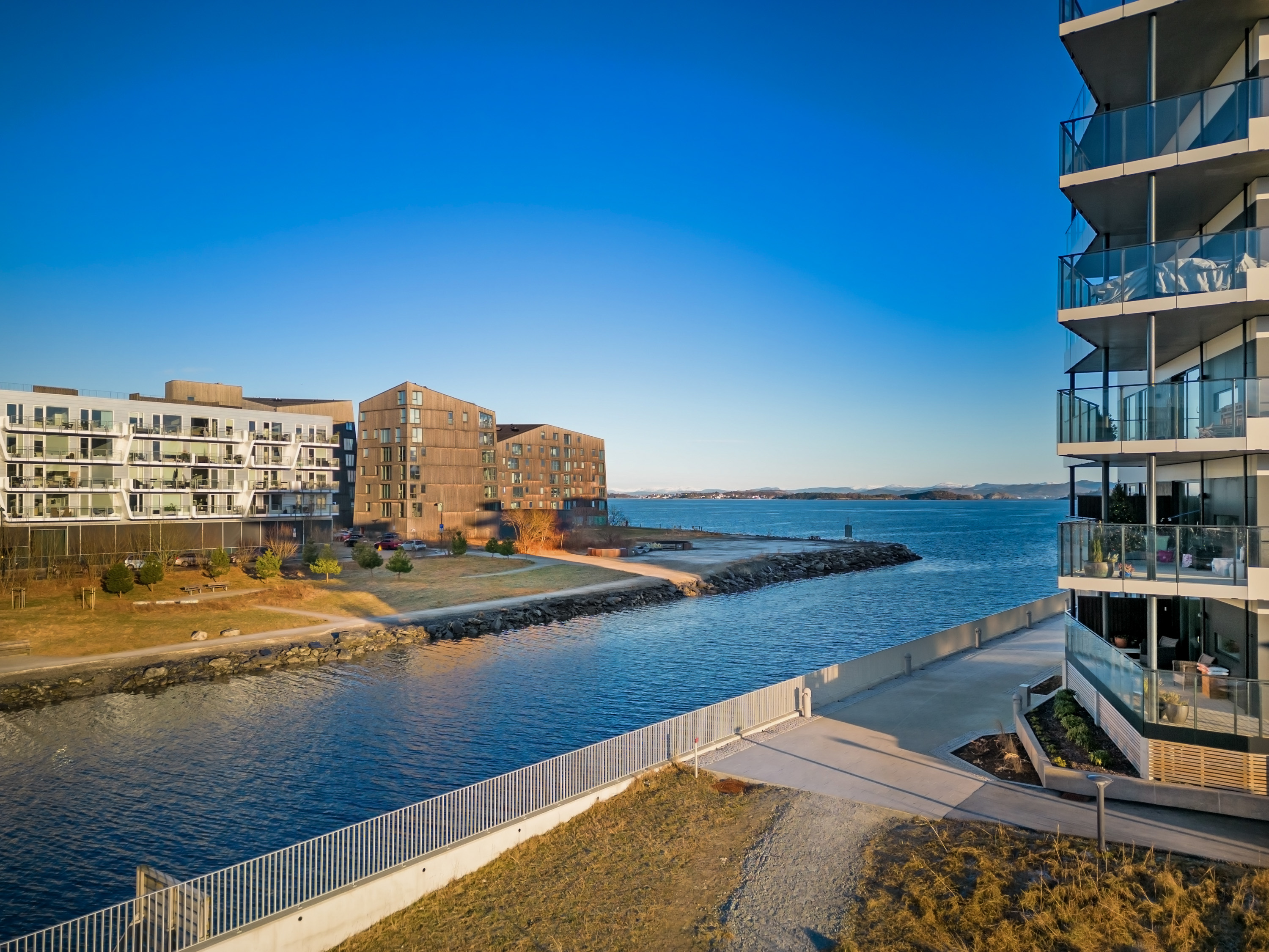 Leiligheten planlegges med lys en-stavs eikeparkett, generøs takhøyde og store vindusflater. Det leveres vannbåren varme i gulv. Balansert ventilasjon sørger for godt inneklima og lave kostnader til oppvarming. Som kjøper kan du velge kostnadsfritt mellom tre ulike interiørstiler (Nordisk/Klassisk/Kreativ) som inkluderer veggfarger, kjøkkenfronter og -håndtak samt benkeplater. Ny bolig kommer med fem års reklamasjonsrett og oppfølging fra utbygger. Alt dette, pluss frisk sjøluft gjennom soveromsvinduet.