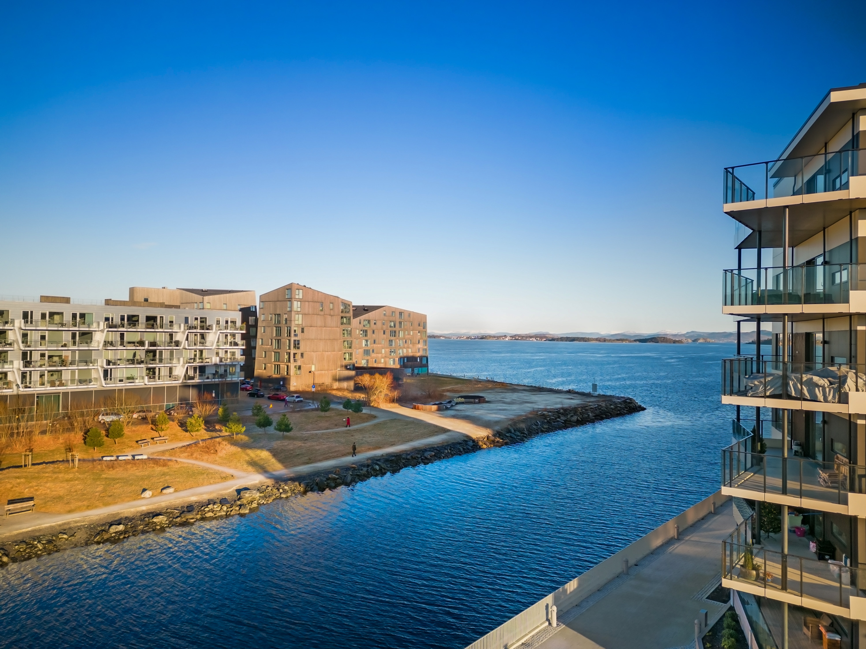Leiligheten planlegges med lys en-stavs eikeparkett, generøs takhøyde og store vindusflater. Det leveres vannbåren varme i gulv. Balansert ventilasjon sørger for godt inneklima og lave kostnader til oppvarming. Som kjøper kan du velge kostnadsfritt mellom tre ulike interiørstiler (Nordisk/Klassisk/Kreativ) som inkluderer veggfarger, kjøkkenfronter og -håndtak samt benkeplater. Ny bolig kommer med fem års reklamasjonsrett og oppfølging fra utbygger. Alt dette, pluss frisk sjøluft gjennom soveromsvinduet.