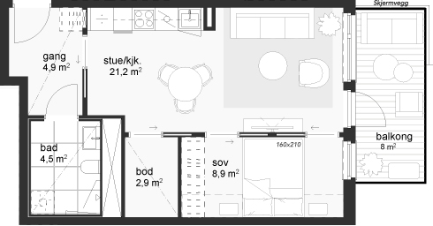 Leiligheten bygges med lys en-stavs eikeparkett, generøs takhøyde og store vindusflater. Balansert ventilasjon sørger for godt inneklima og lave kostnader til oppvarming. Som kjøper kan du velge mellom tre ulike interiørstiler uten ekstra kostnad. Konseptene FUNKIS, JÄRVENPÄÄ og LØKKA definerer veggfarger, kjøkkenfronter og -håndtak, benkeplate og fliser på bad. Du kan lese mer om innredningsvalgene i prospektet. Leiligheten kvalifiserer til Grønt Boliglån. Ta kontakt med selger for mer informasjon.