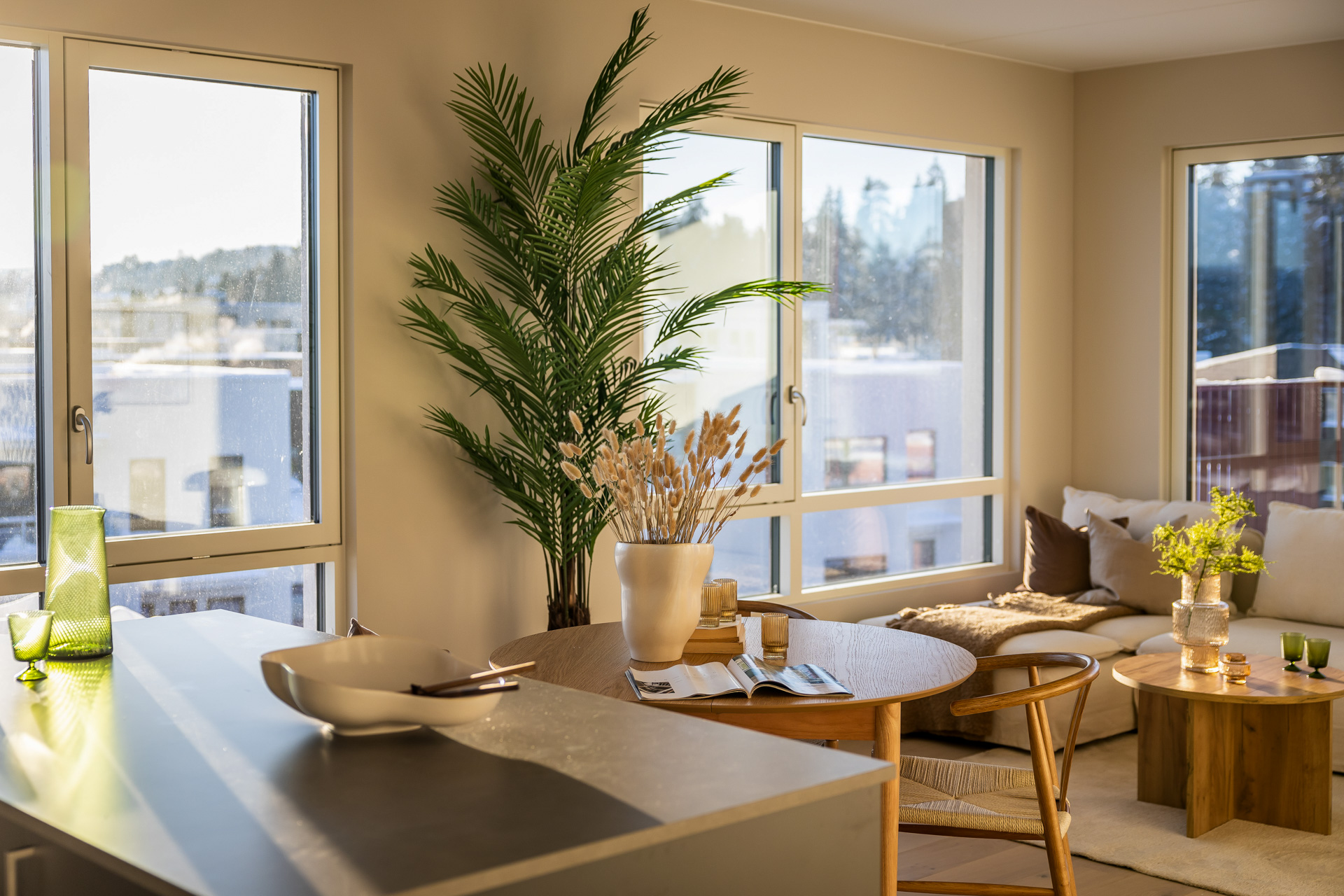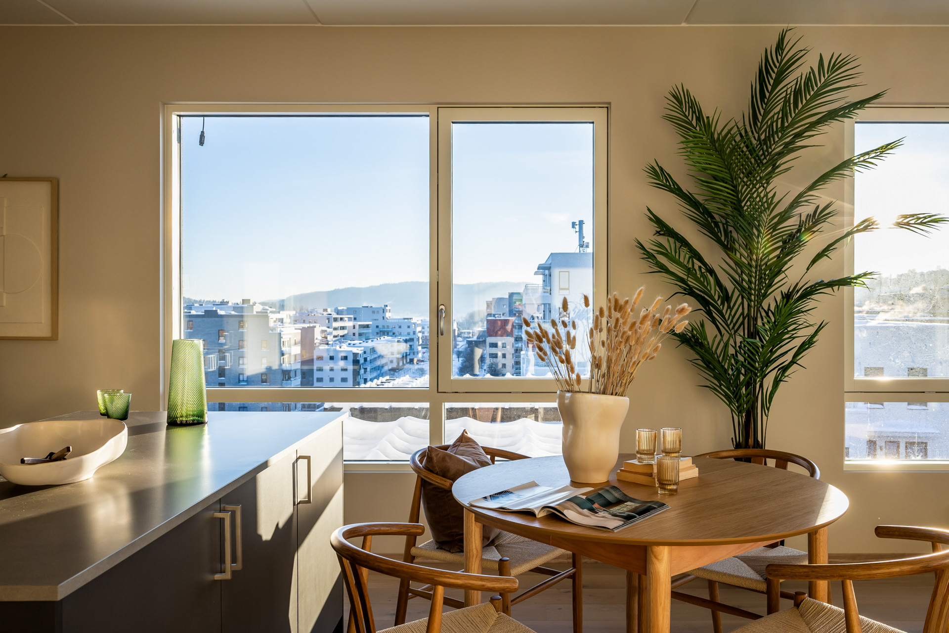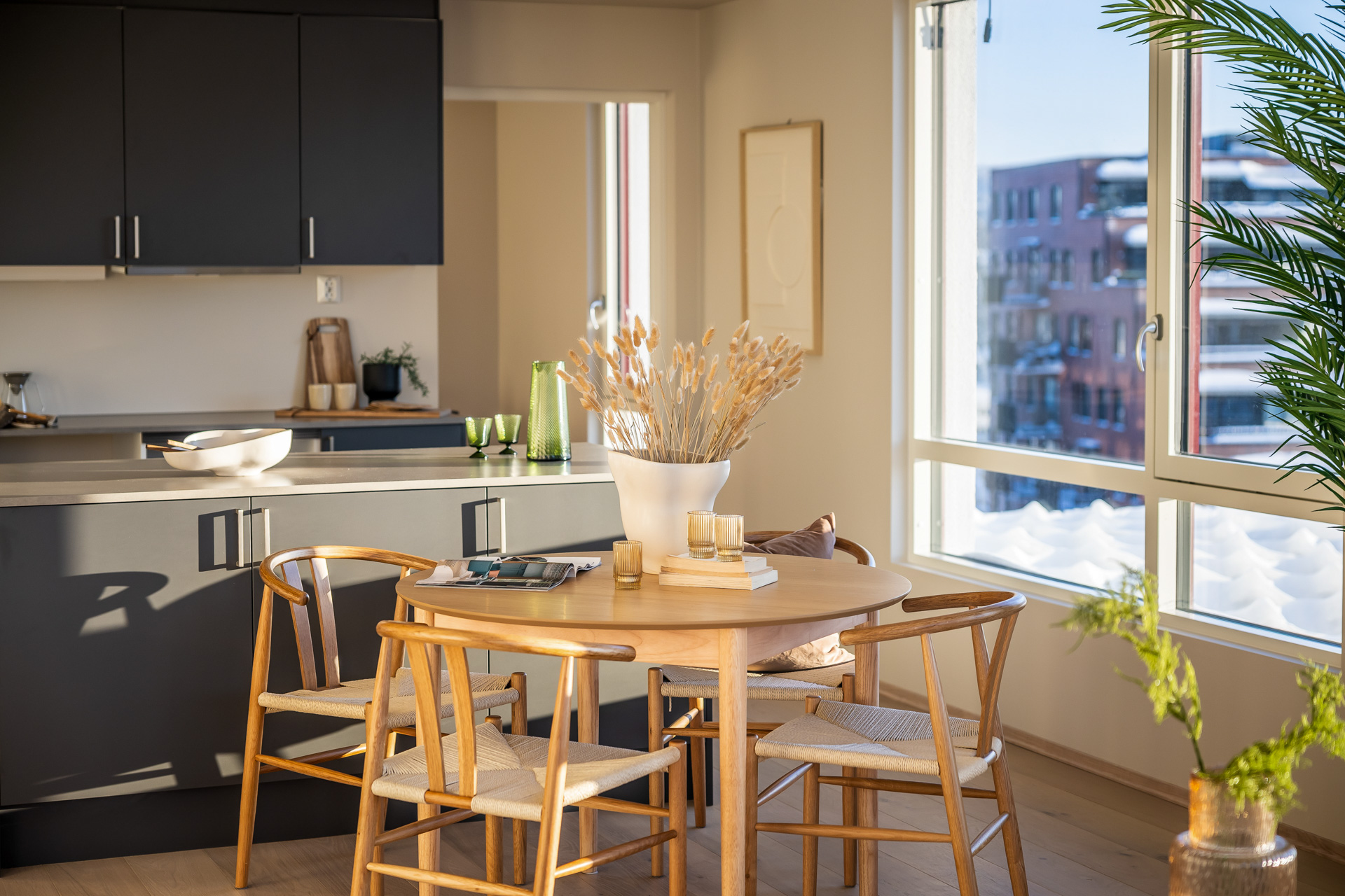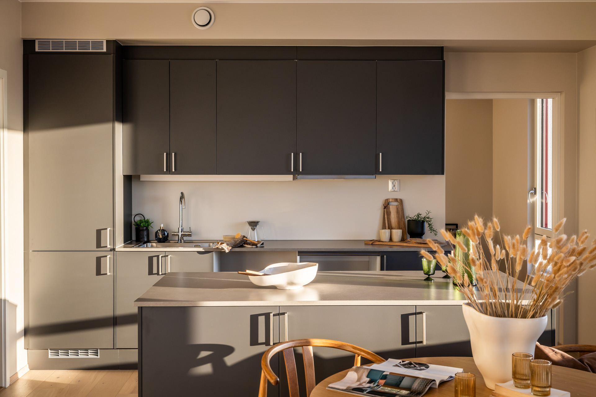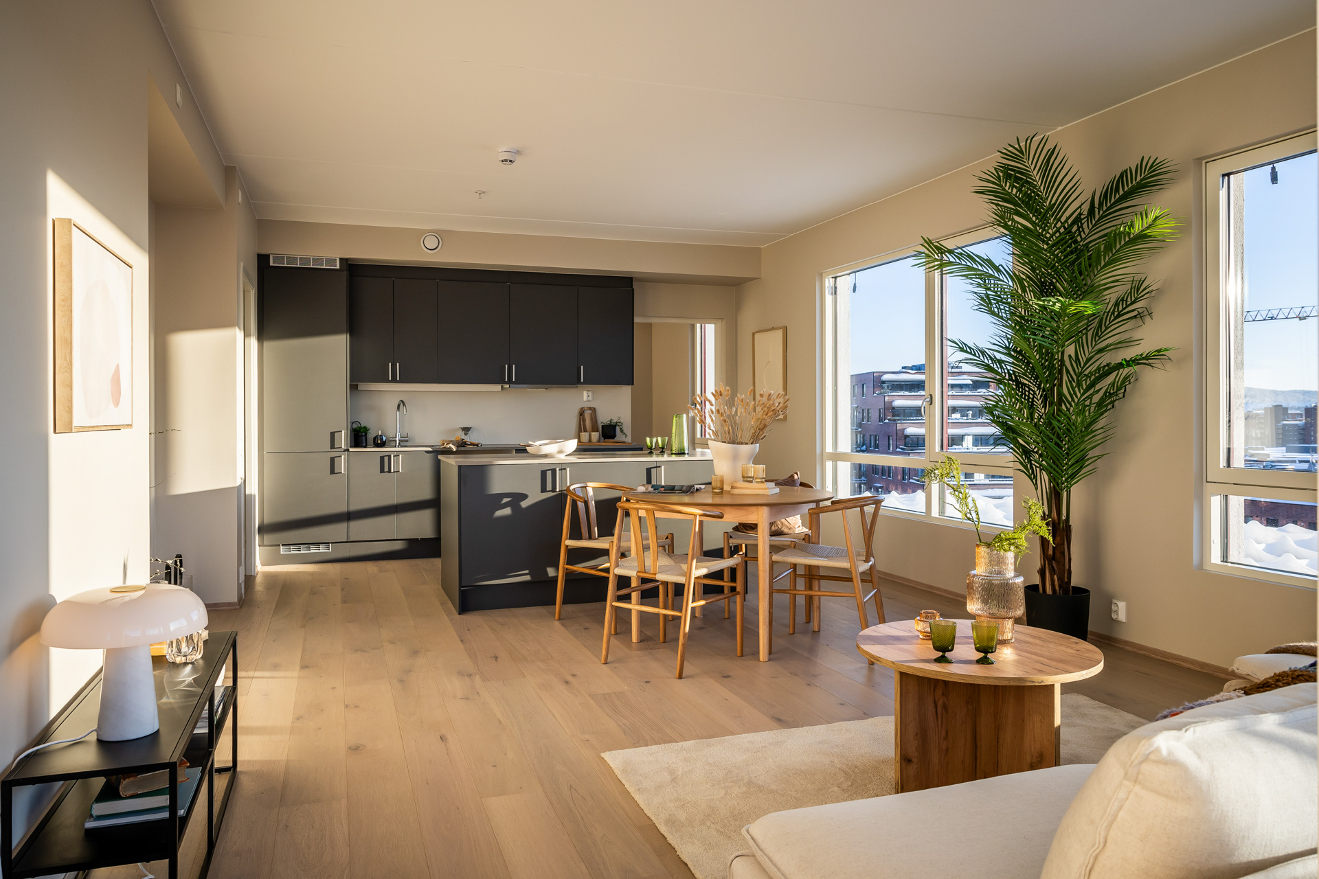 Åpen stue/kjøkkenløsning med takhøyde på 2.6 meter og store vinduer som slipper lyset inn. Pen og tidsriktig lys en-stavs eikeparkett, og lys innredning og fargedekor. Balansert ventilasjon med varmegjenvinning som sørger for godt inneklima og lave kostnader for oppvarming. Vi tilbyr nå Deleie i samarbeid med Coo til alle våre boligkjøpere. Ta kontakt med selger for mer informasjon!