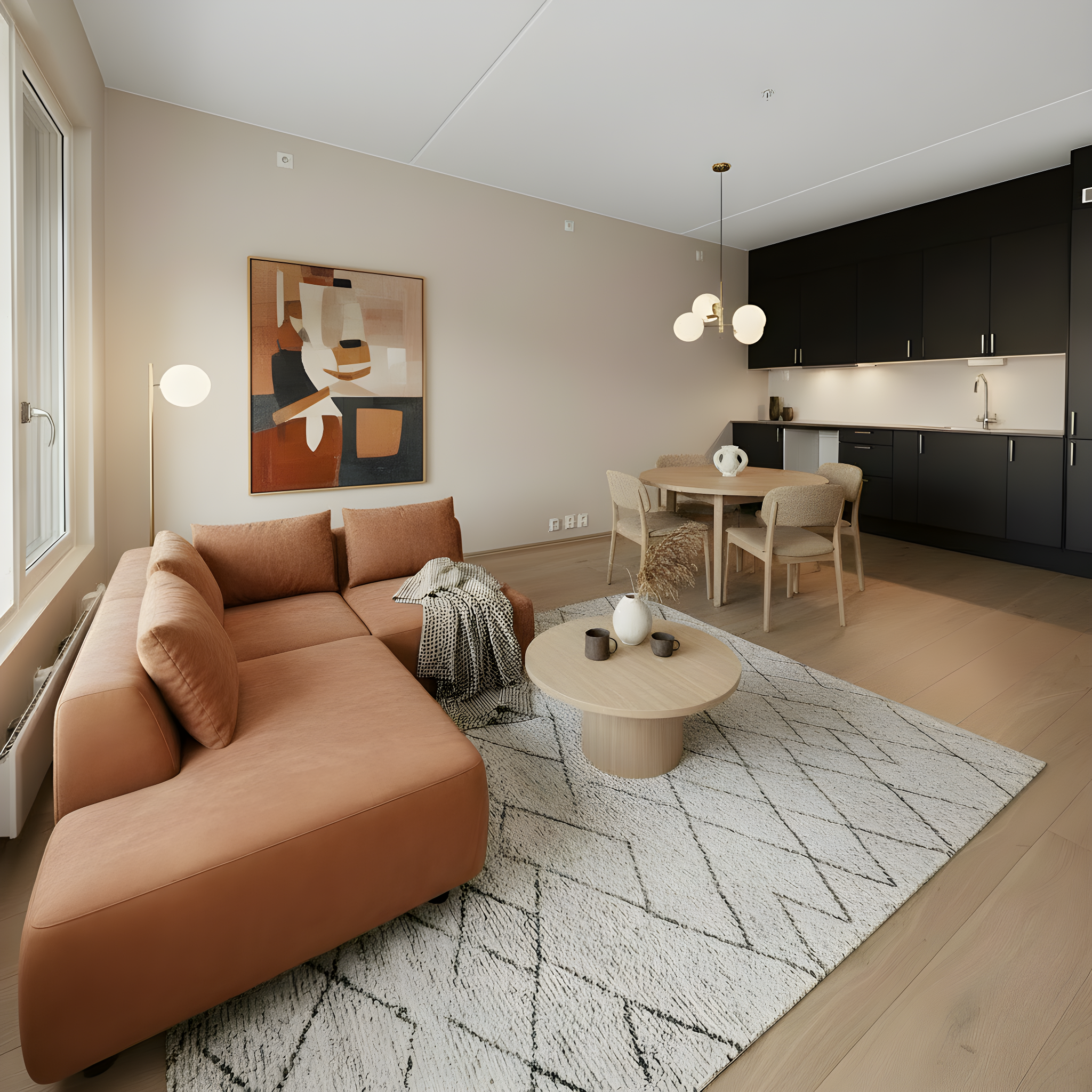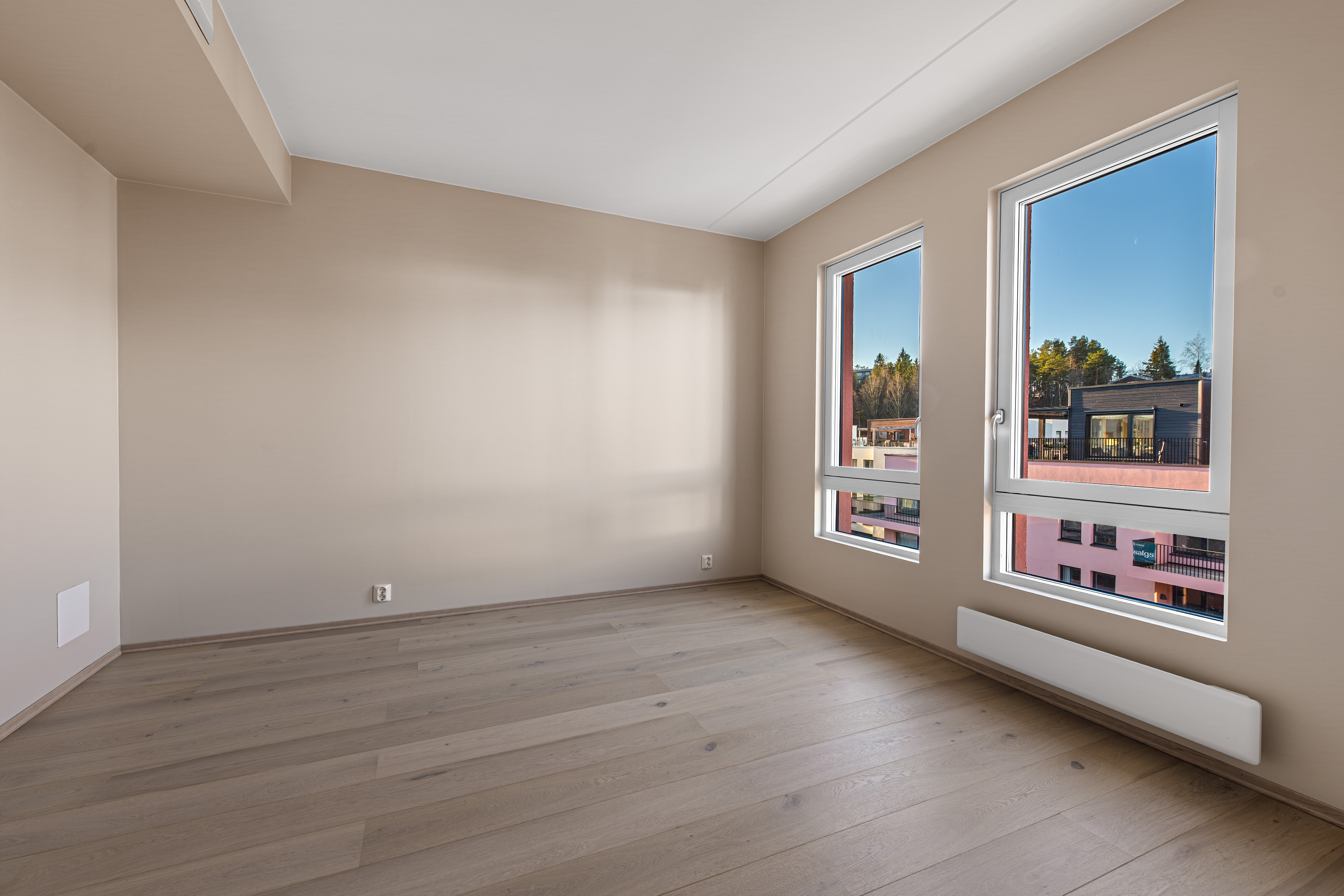 Åpen stue/kjøkkenløsning med takhøyde på 2.6 meter og store vinduer som slipper lyset inn. Pen og tidsriktig lys en-stavs eikeparkett, og lys innredning og fargedekor. Balansert ventilasjon med varmegjenvinning som sørger for godt inneklima og lave kostnader for oppvarming. Vi tilbyr nå Deleie i samarbeid med Coo til alle våre boligkjøpere. Ta kontakt med selger for mer informasjon!