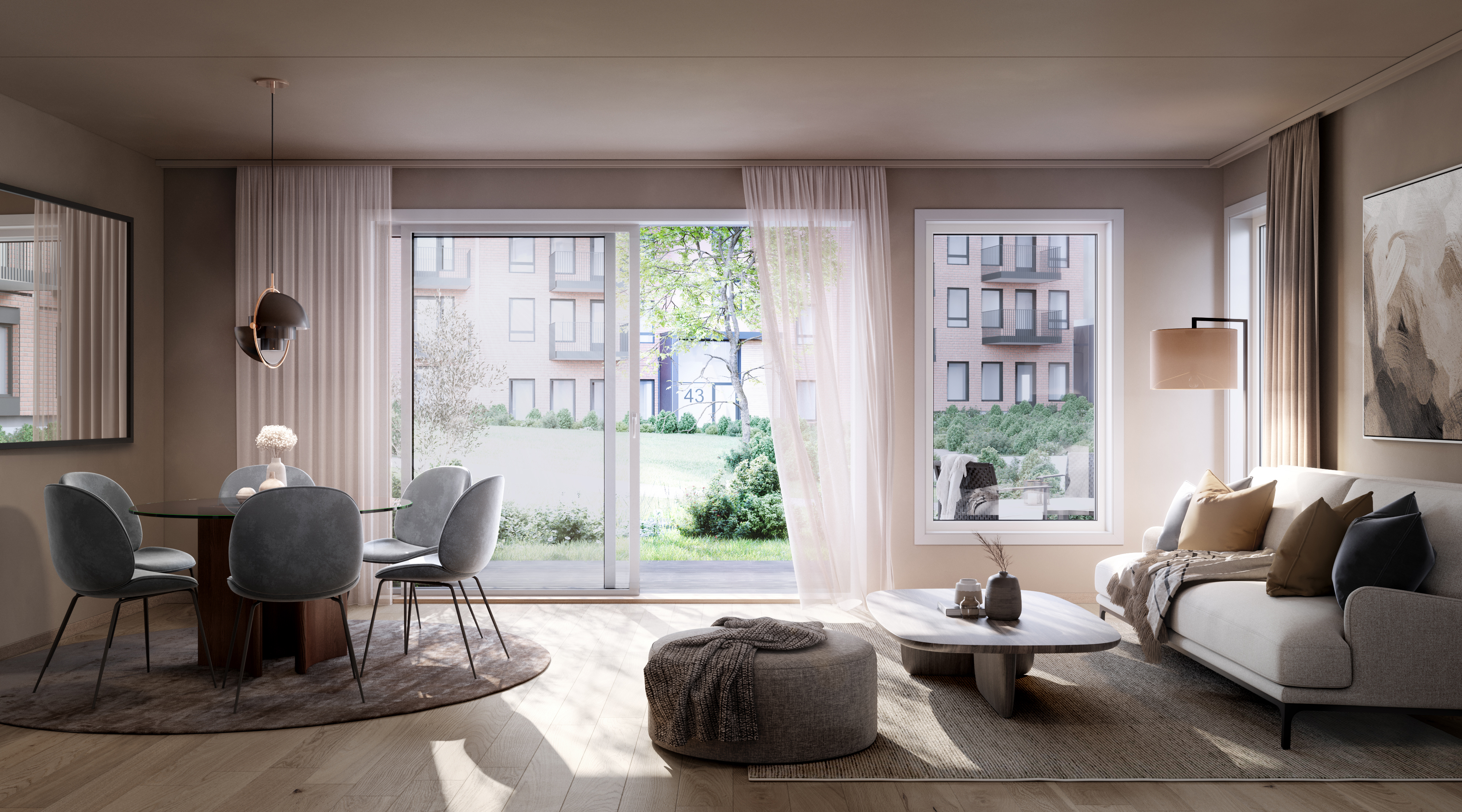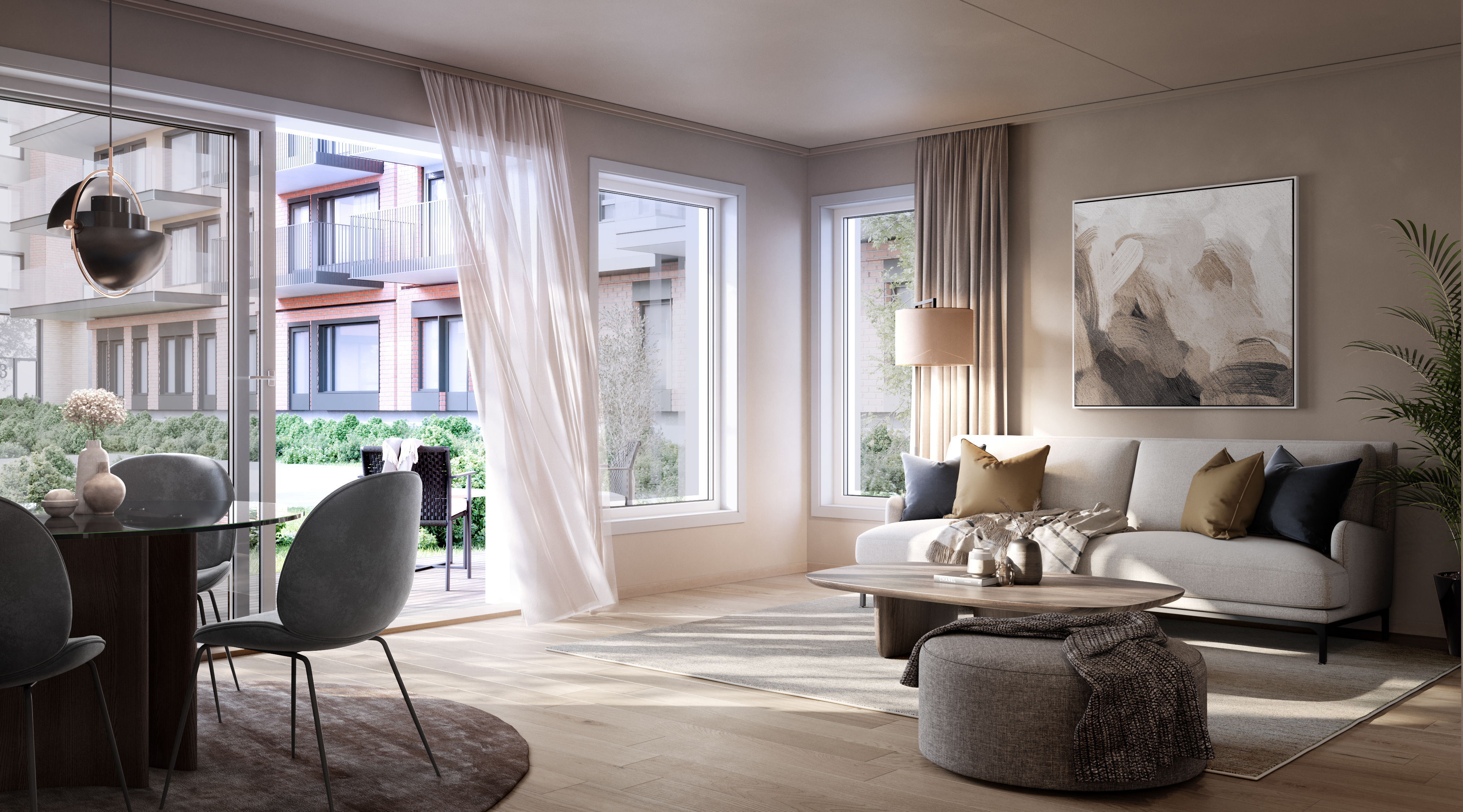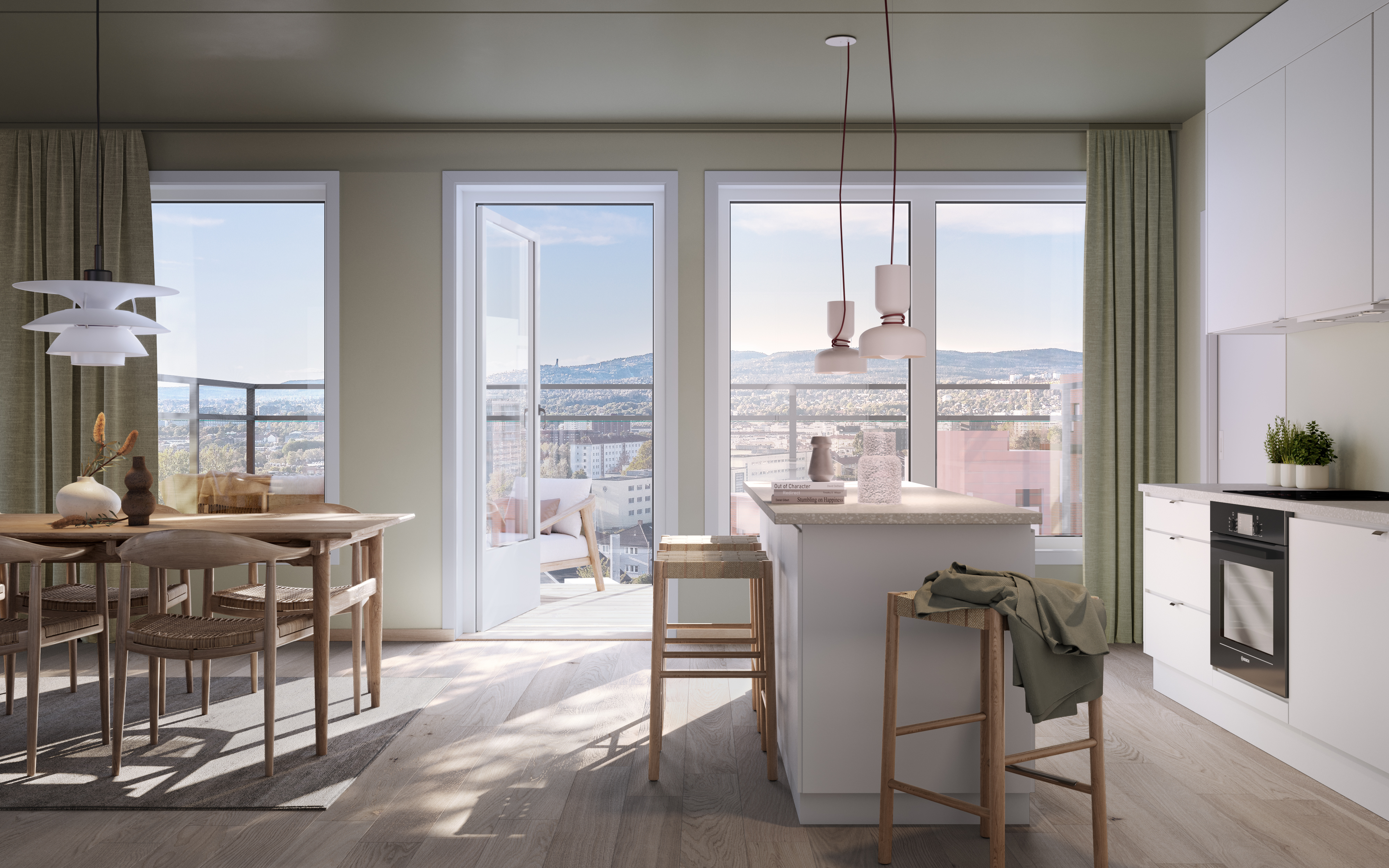 Interaktiv modell med sol og utsikt