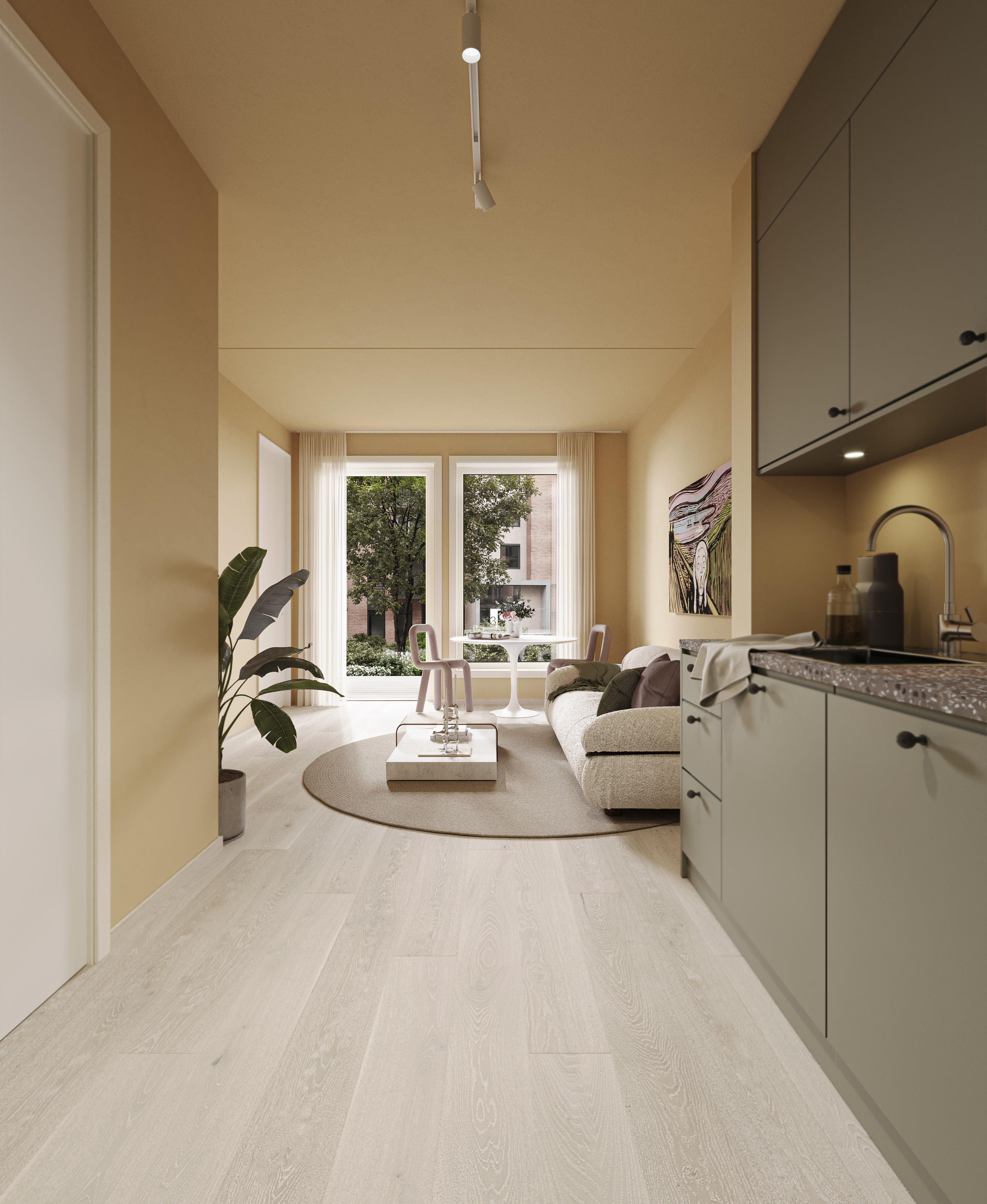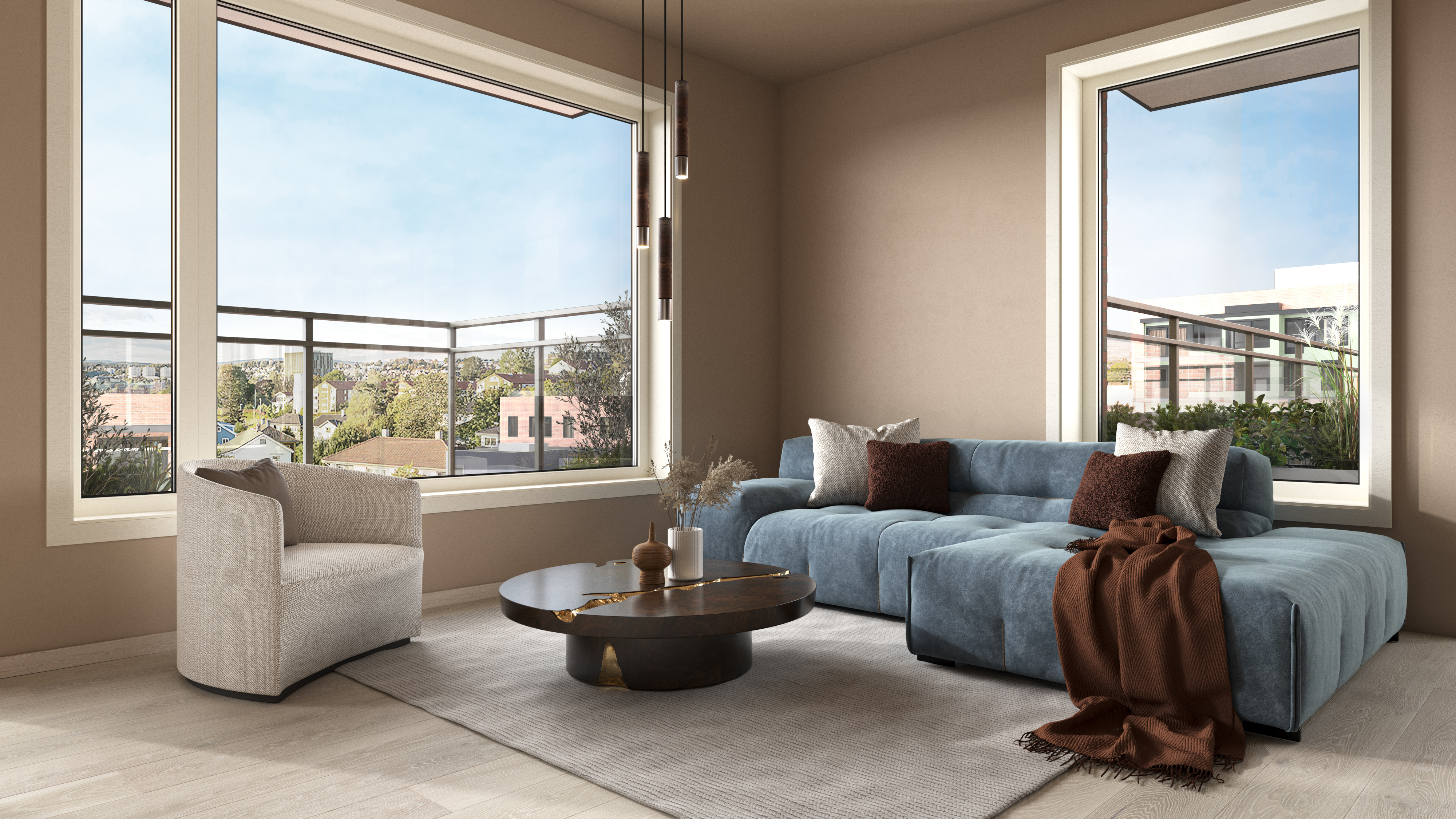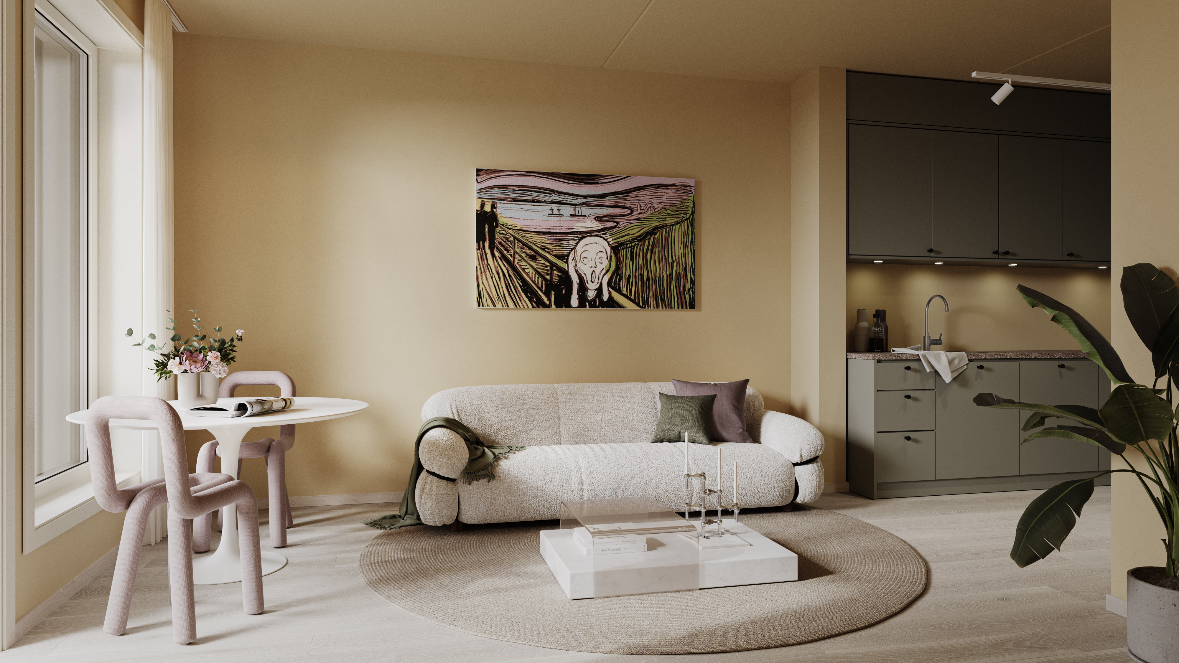 Interaktiv modell med sol og utsikt