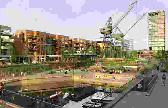 Første fase, i området rundt de store verkstedkranene, vil i hovedsak inneholde fire leilighetsbygg samt butikker, kaféer og annen næringsvirksomhet på gateplan. Den velkjente, gule verkstedhallen skal i sin helhet bevares i og bygges om til et senter for kultur og opplevelse på FMV Vest.