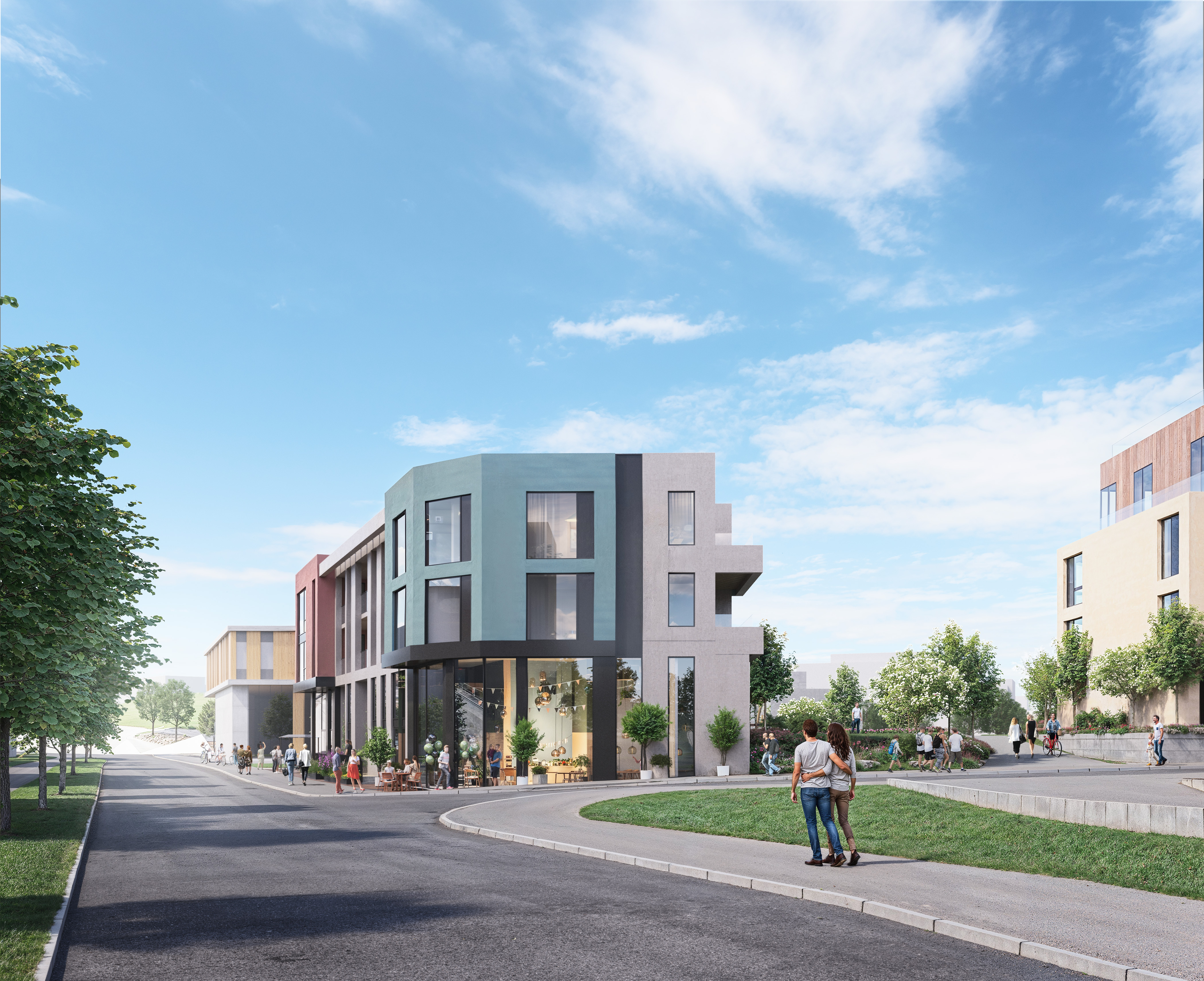 Bryggetunet består av tre bygg, utformet rundt et grønt og hyggelig tun med beplantning, sittegrupper og lekeapparater – perfekt for både små og store. Alle boligene får private uteplasser, store vindusflater og generøs takhøyde som gir en lys og luftig atmosfære.