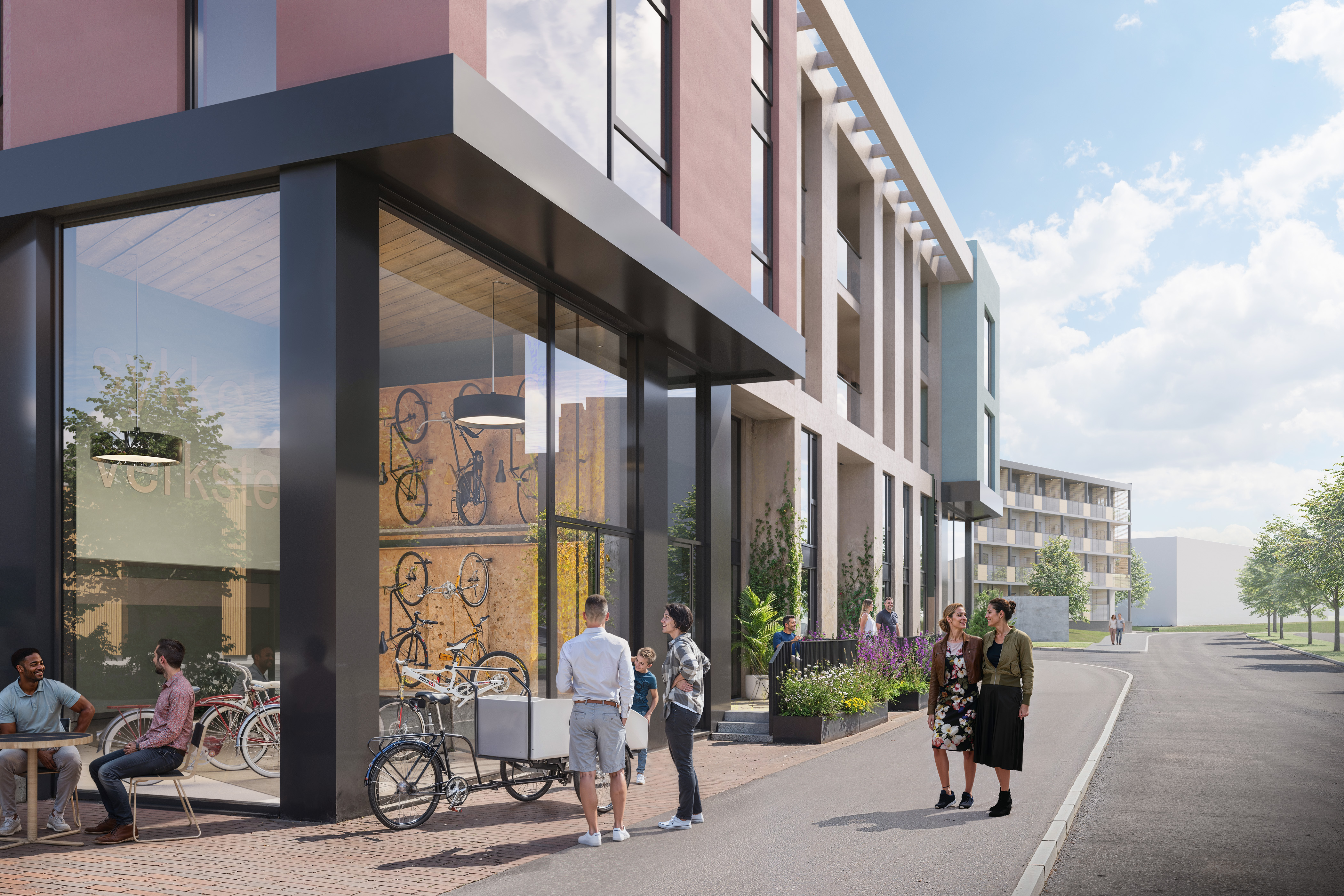 I Bryggetunet legges det vekt på fellesskap og trivsel. Her får beboerne tilgang til et nabolagslokale – et sosialt samlingspunkt for hverdag og fest. I tillegg kommer det sykkelverksted, barnevognparkering og garasje i ett av byggene.