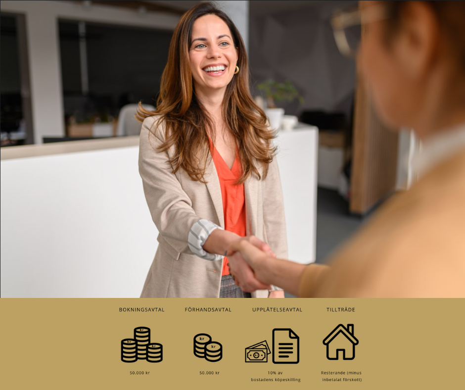 Bokningsavtal – När du hittar din drömlägenhet tecknar du ett bokningsavtal och betalar 50.000 kr. Avtalet är inte bindande.