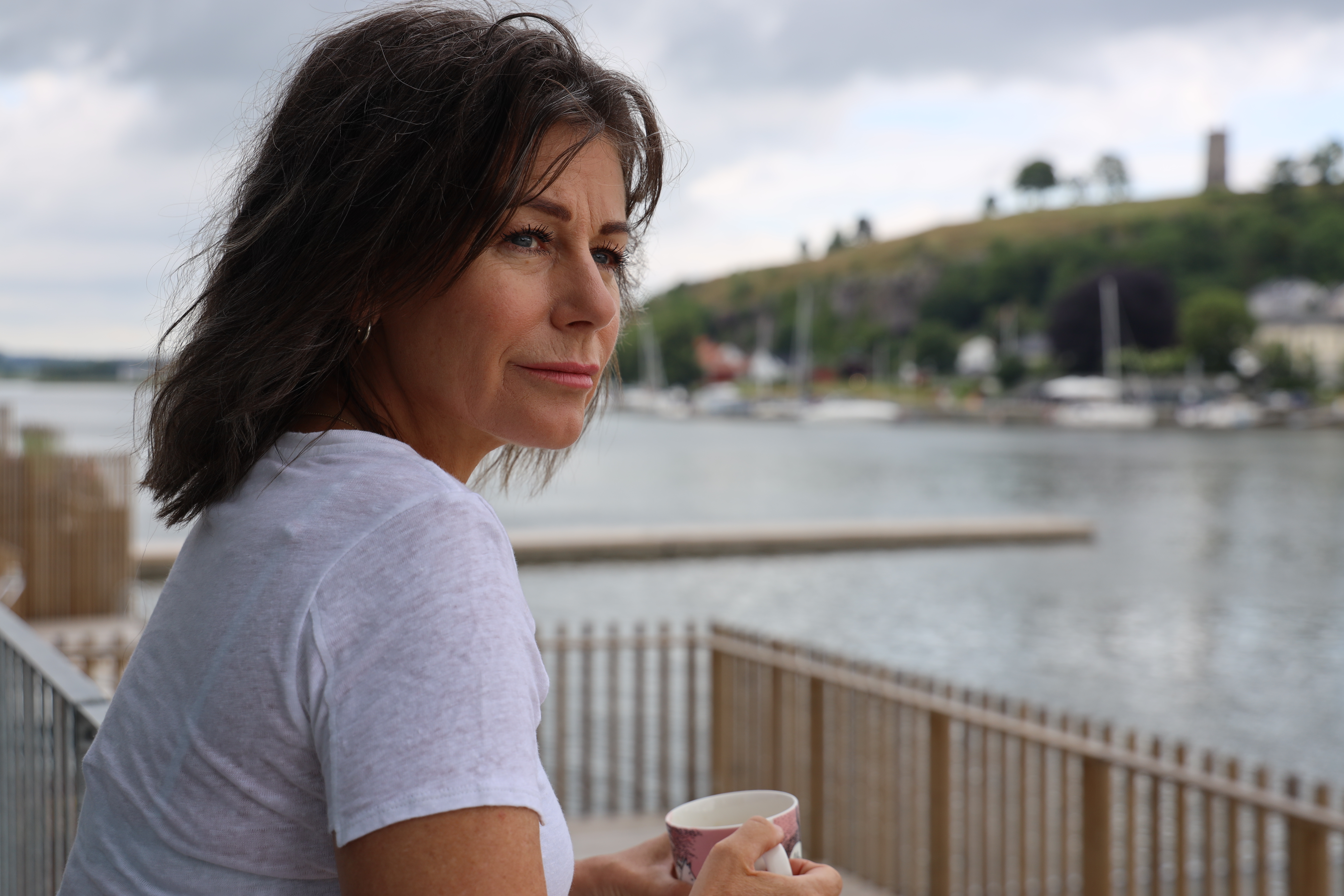 På morgenen nytes kaffen ute på balkongen, før du skal sykle til byen og handle det siste til sommerfesten. Solen speiler seg i sjøen, og kaster dansende refleksjoner opp langs husveggen der du sitter. I vannkanten like...