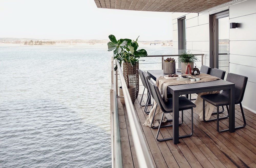 Sjøen er nærmeste nabo til den vestvendte terrassen, der alle måltider inntas utendørs i sommerhalvåret. Særlig nærmere sydenstemning kommer du ikke i Norge.