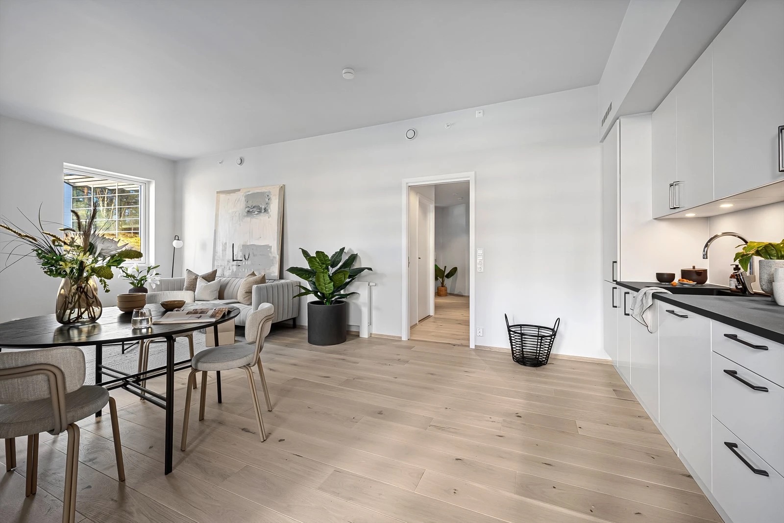 - Delikat og moderne innredning med en-stavs lys eikeparkett