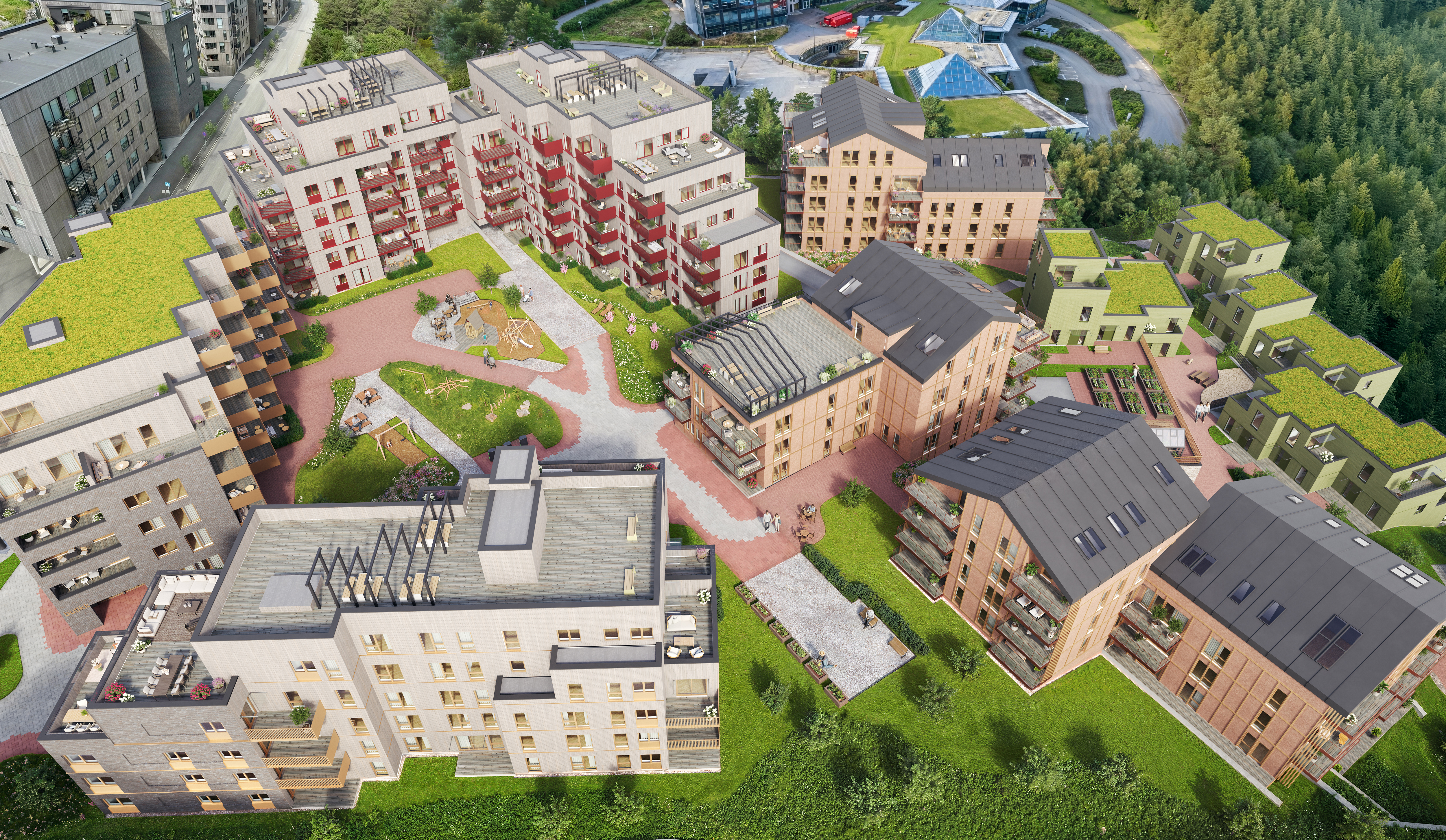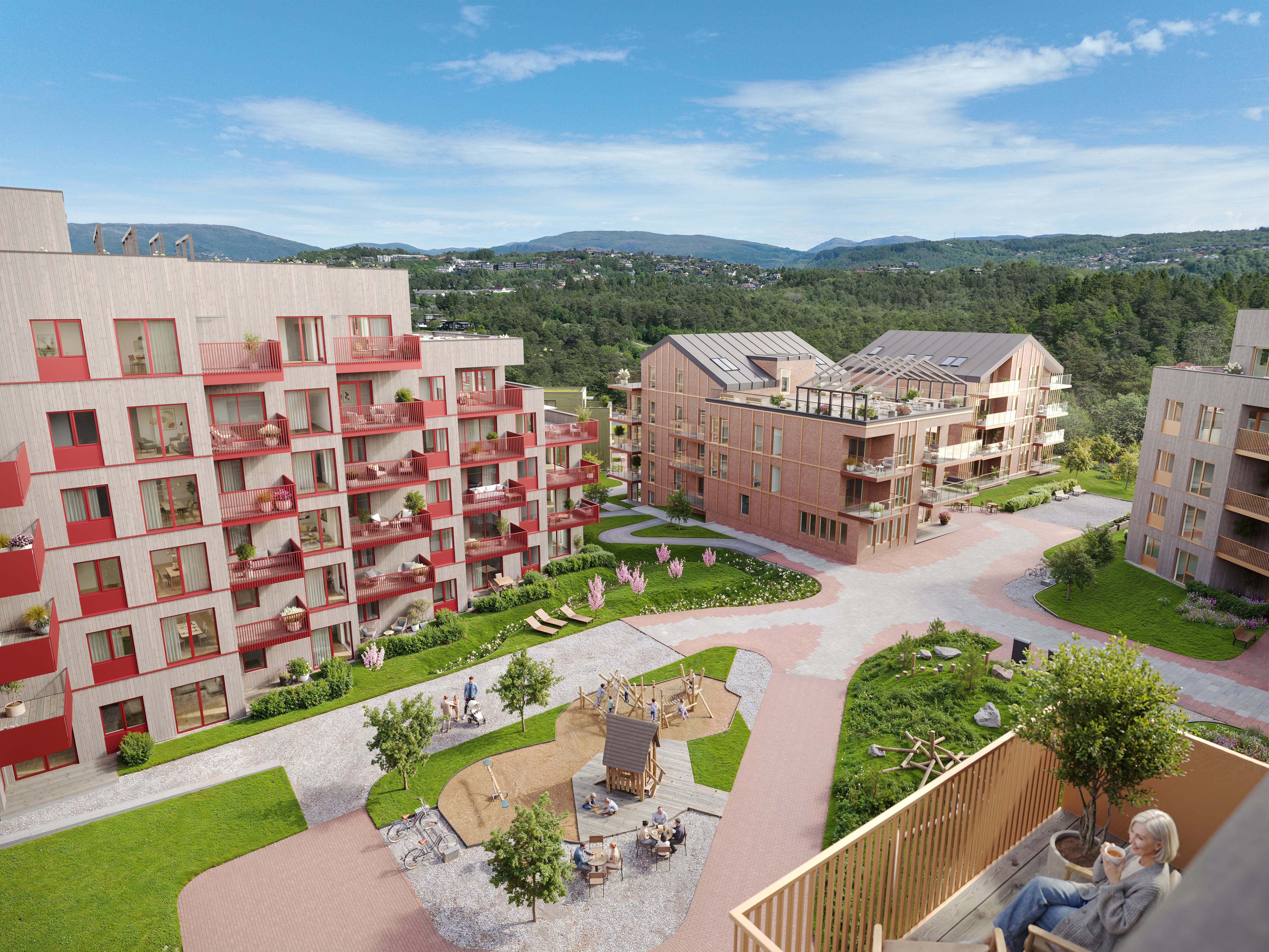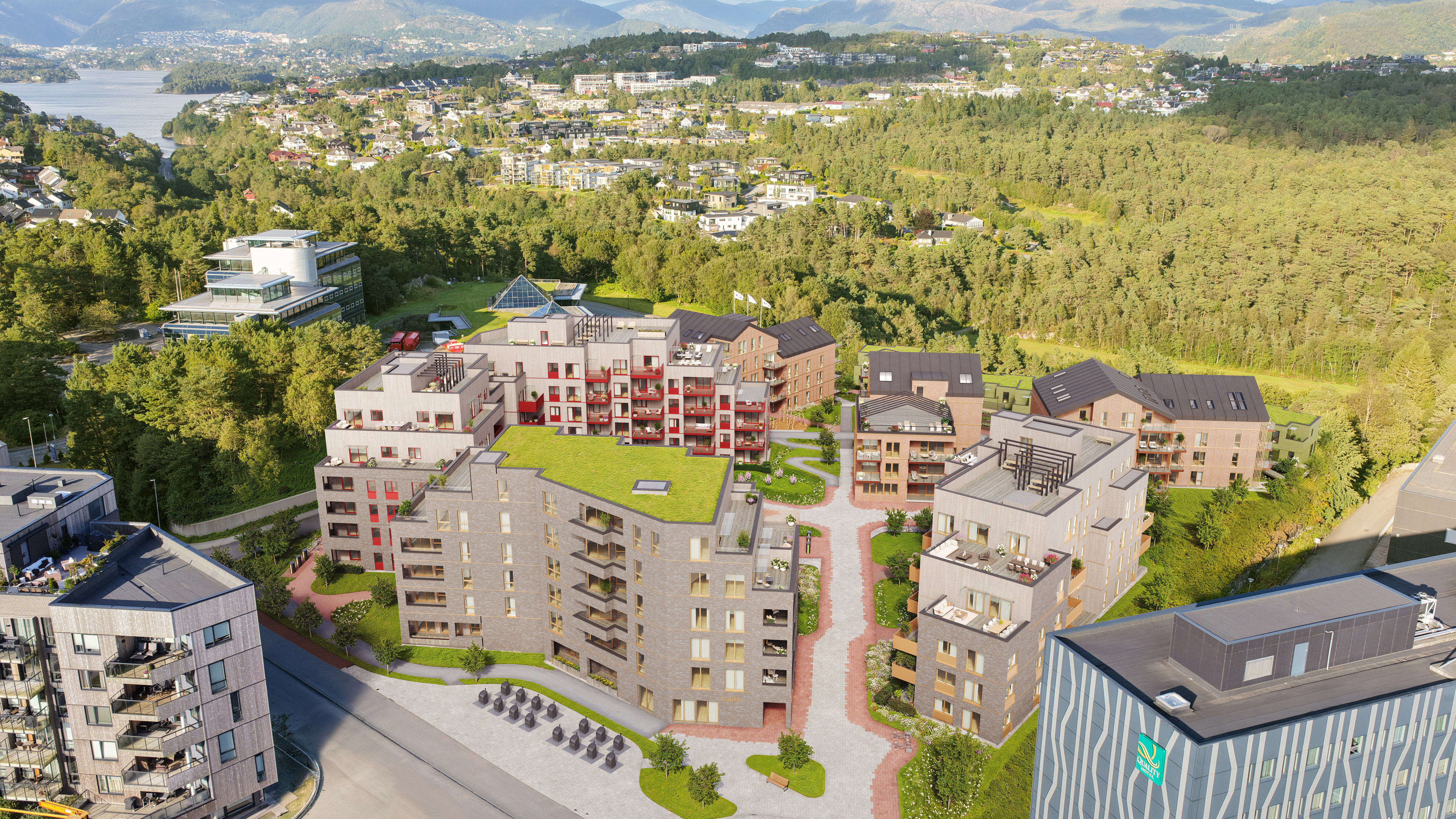 Oppå en høyde i Sandsliåsen skal det vokse frem et helt nytt boligprosjekt med både rekkehus og leiligheter. Her kommer totalt 206 moderne boliger omgitt av grønne fellesområder, trygge lekeplasser og flotte møteplasser for både små og store.