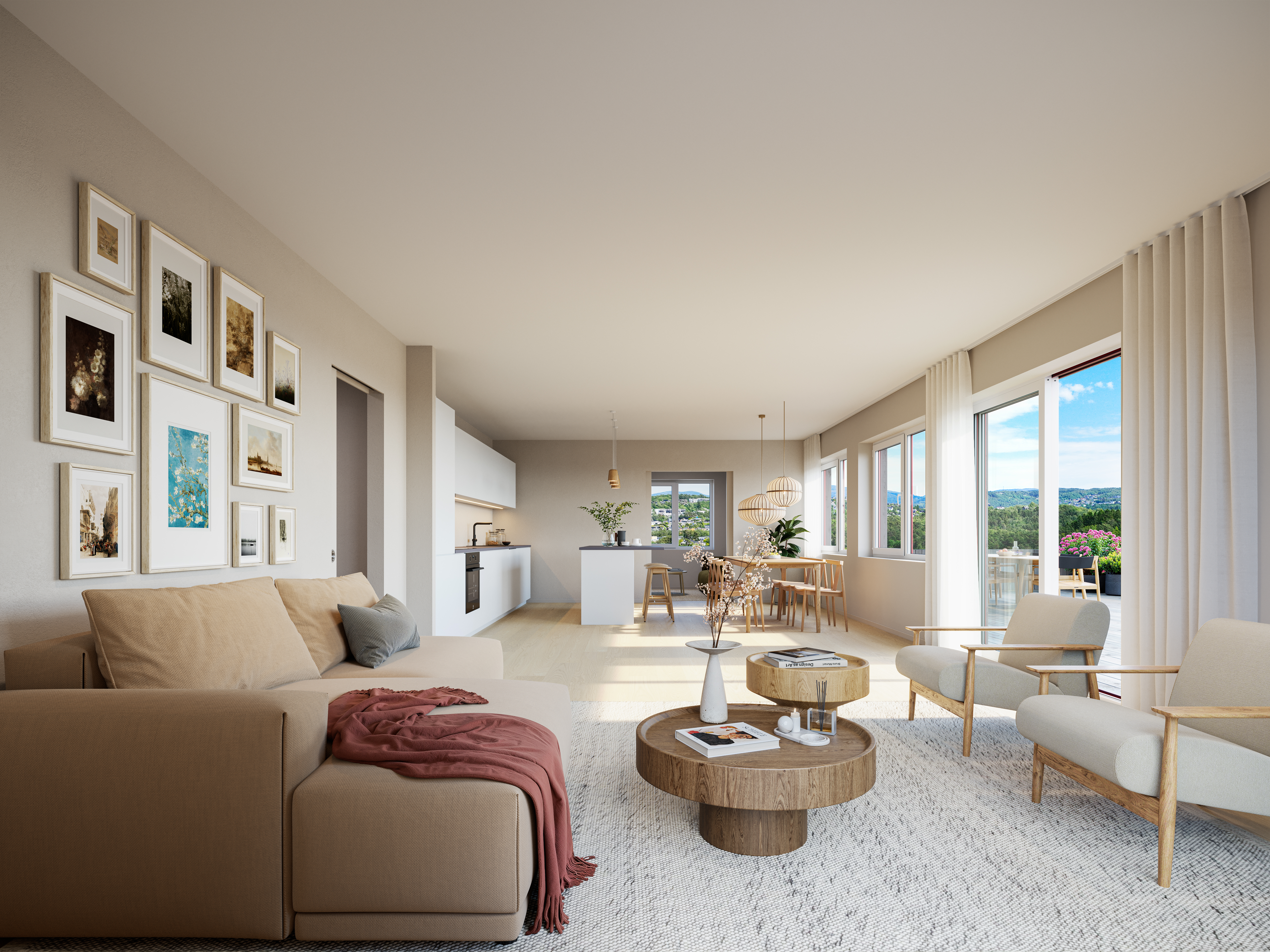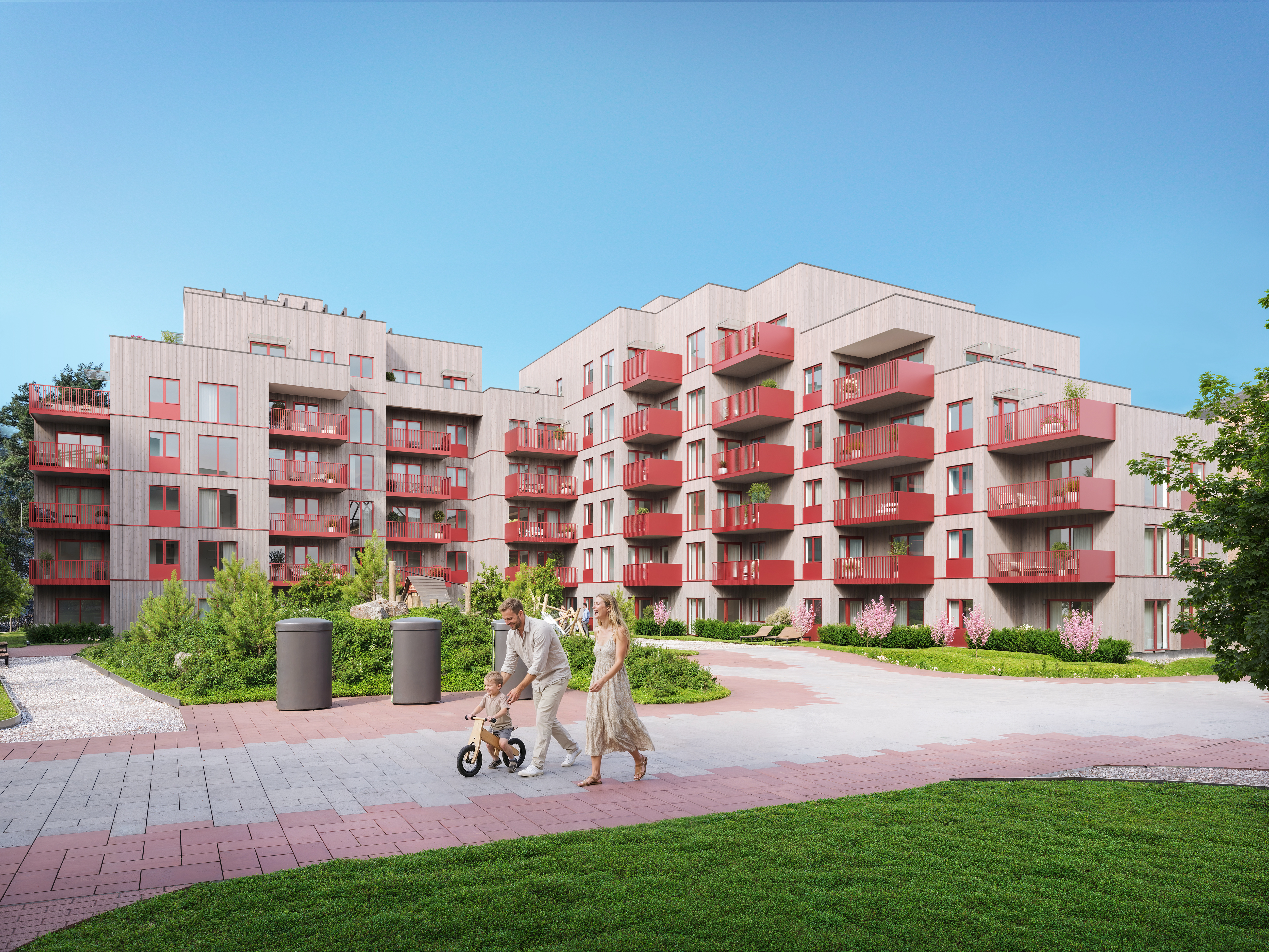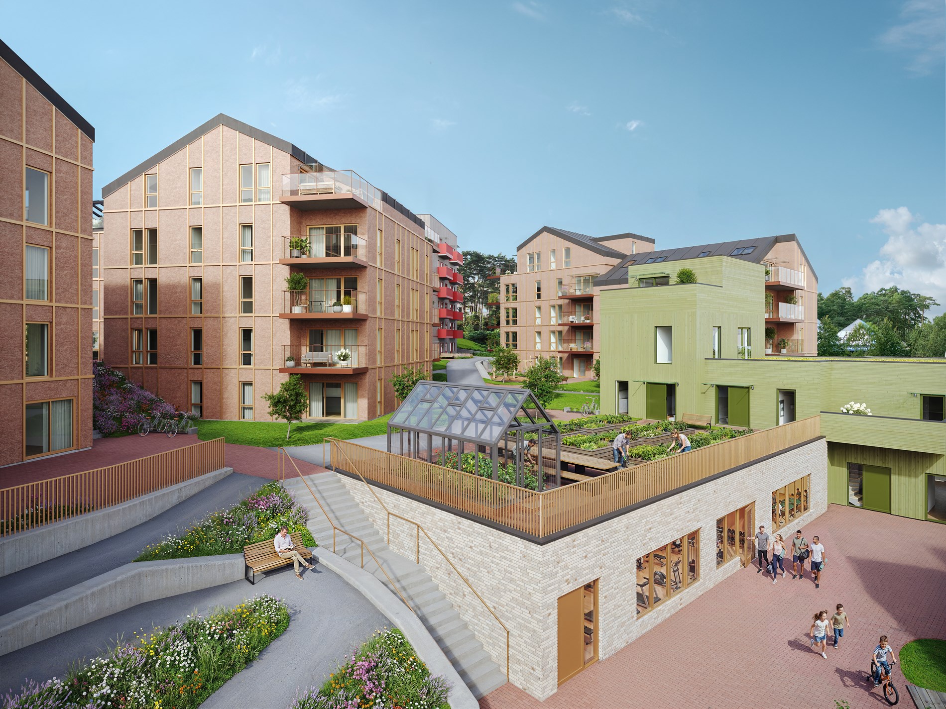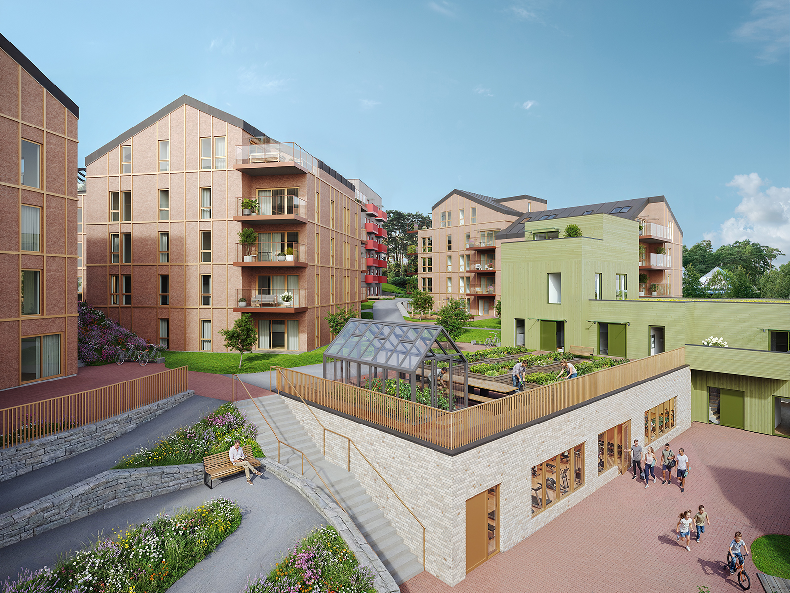 Oppå en høyde i Sandsliåsen skal det vokse frem et helt nytt boligprosjekt med både rekkehus og leiligheter. Her kommer totalt 206 moderne boliger omgitt av grønne fellesområder, trygge lekeplasser og flotte møteplasser for både små og store.