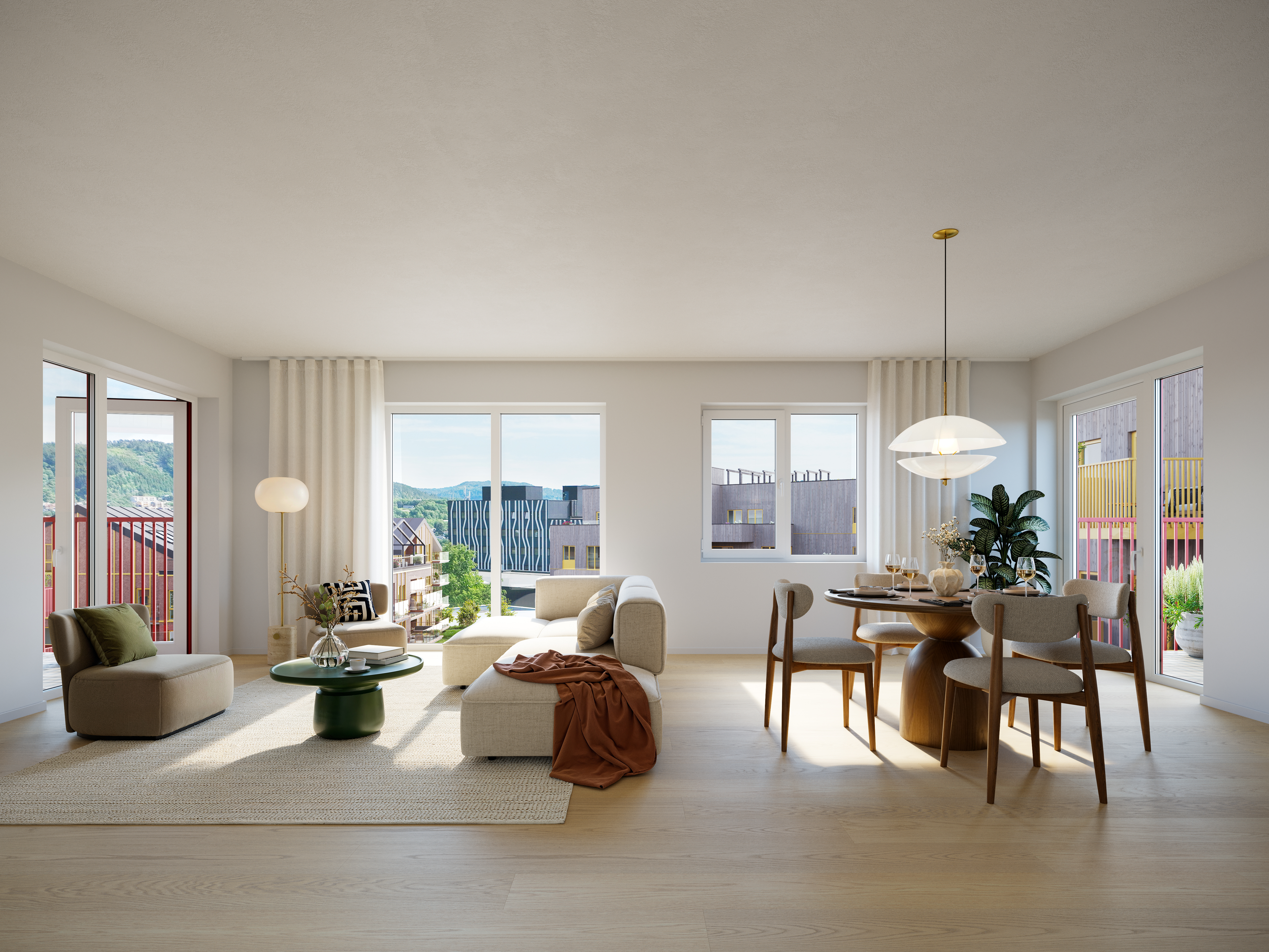 Hus C og D kommer snart for salg og her kan du velge mellom 63 lyse og moderne leiligheter med gode planløsninger. Du finner både 2-, 3-, 4- og 5-roms – inkludert leilighet med utleiedel! Her skal det være fint å bo enten du kjøper for første gang, ønsker plass til en voksende familie eller vil bytte ut eneboligen med en enklere og mer fleksibel hverdag.