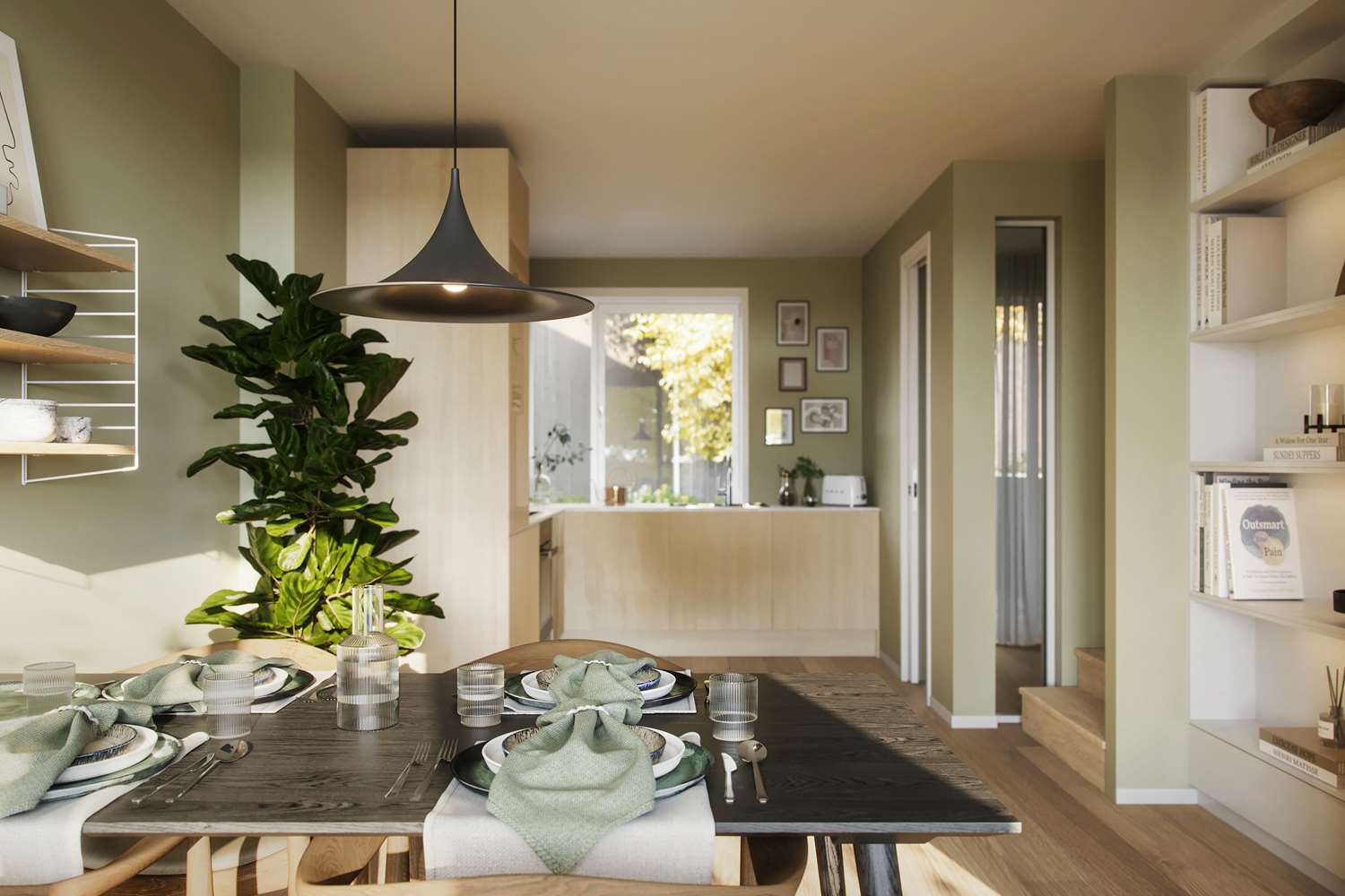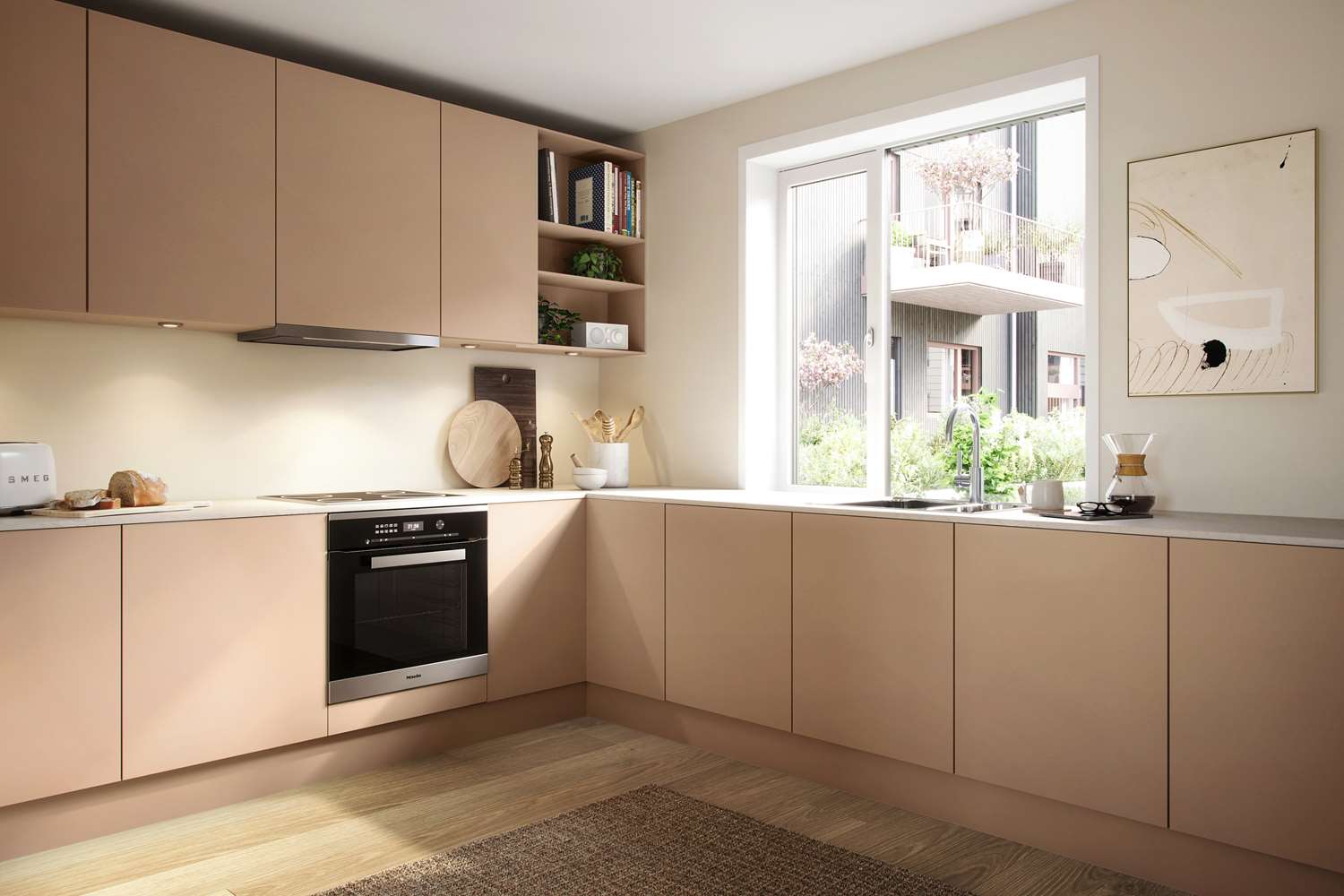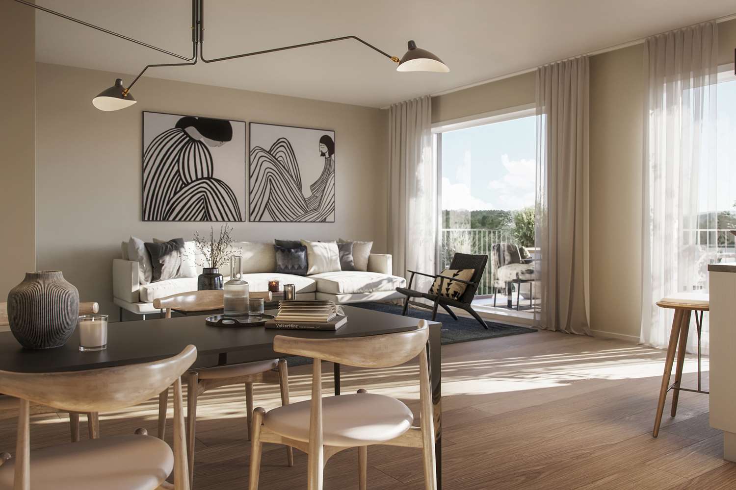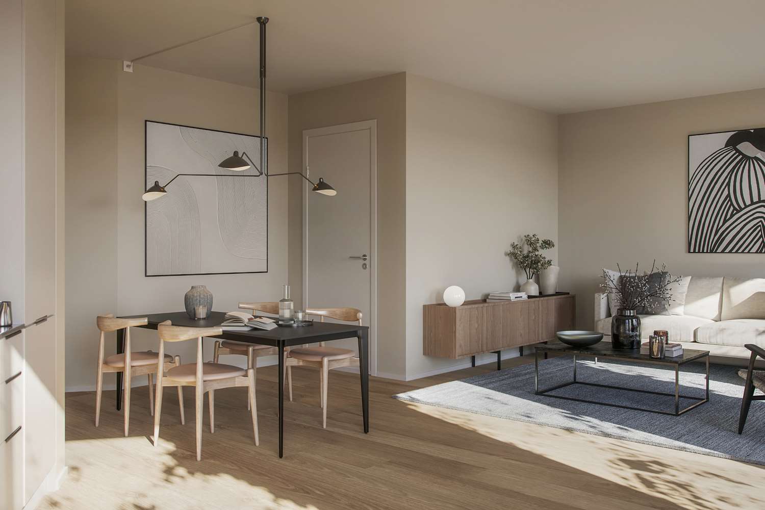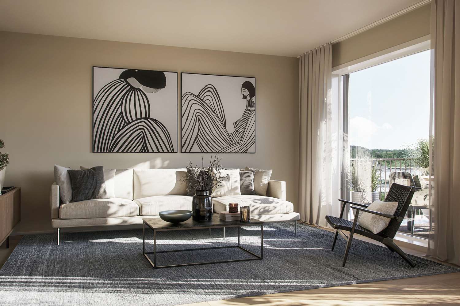 Her bygger vi 12 rekkehus og 46 leiligheter med balkong eller terrasse – alle med moderne planløsninger og gode lysforhold.