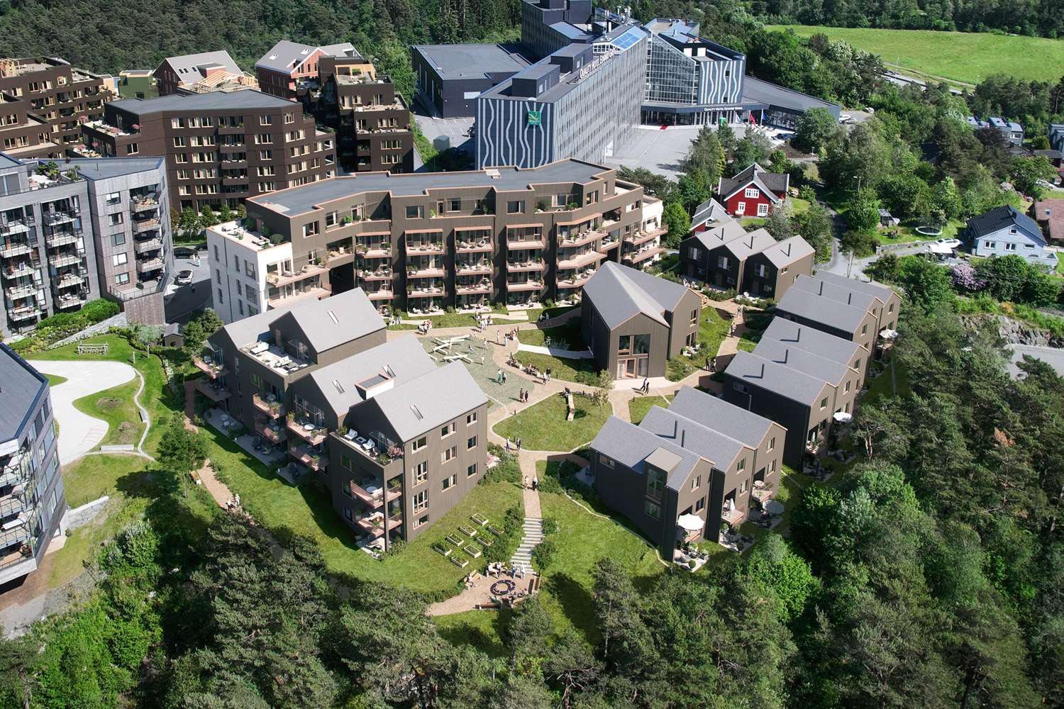 Sandsliåsen Hageby ligger høyt og fritt over Håvardstunvatnet – med naturen rett utenfor døren og kort vei til bybane, sentrum og Bergen lufthavn. Her bor du grønt, rolig og familievennlig, samtidig som du har enkel tilgang til både jobb, skole og fritidstilbud.